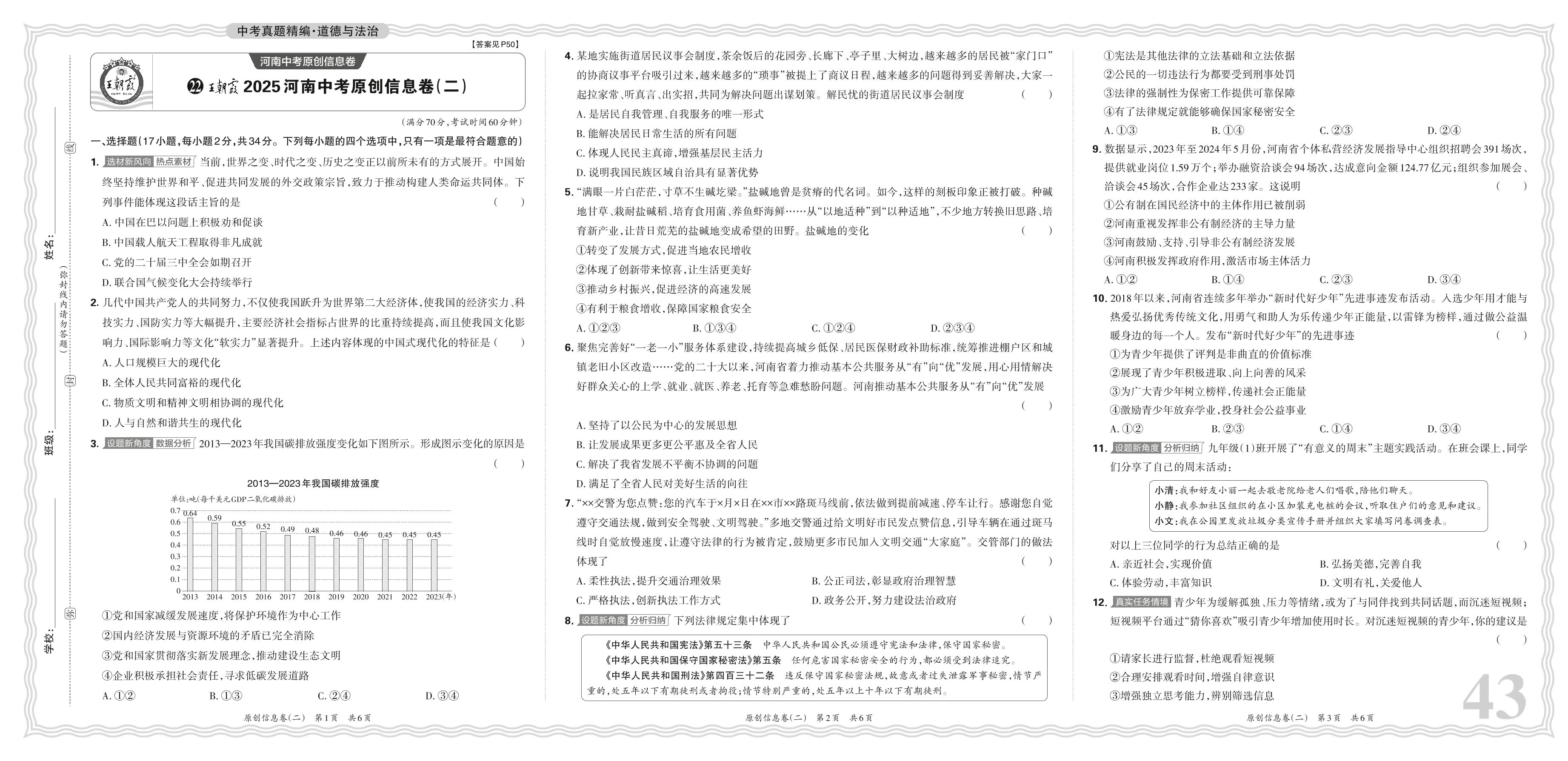 中考道德与法治·王朝霞2025河南中考原创信息卷(二)【22】