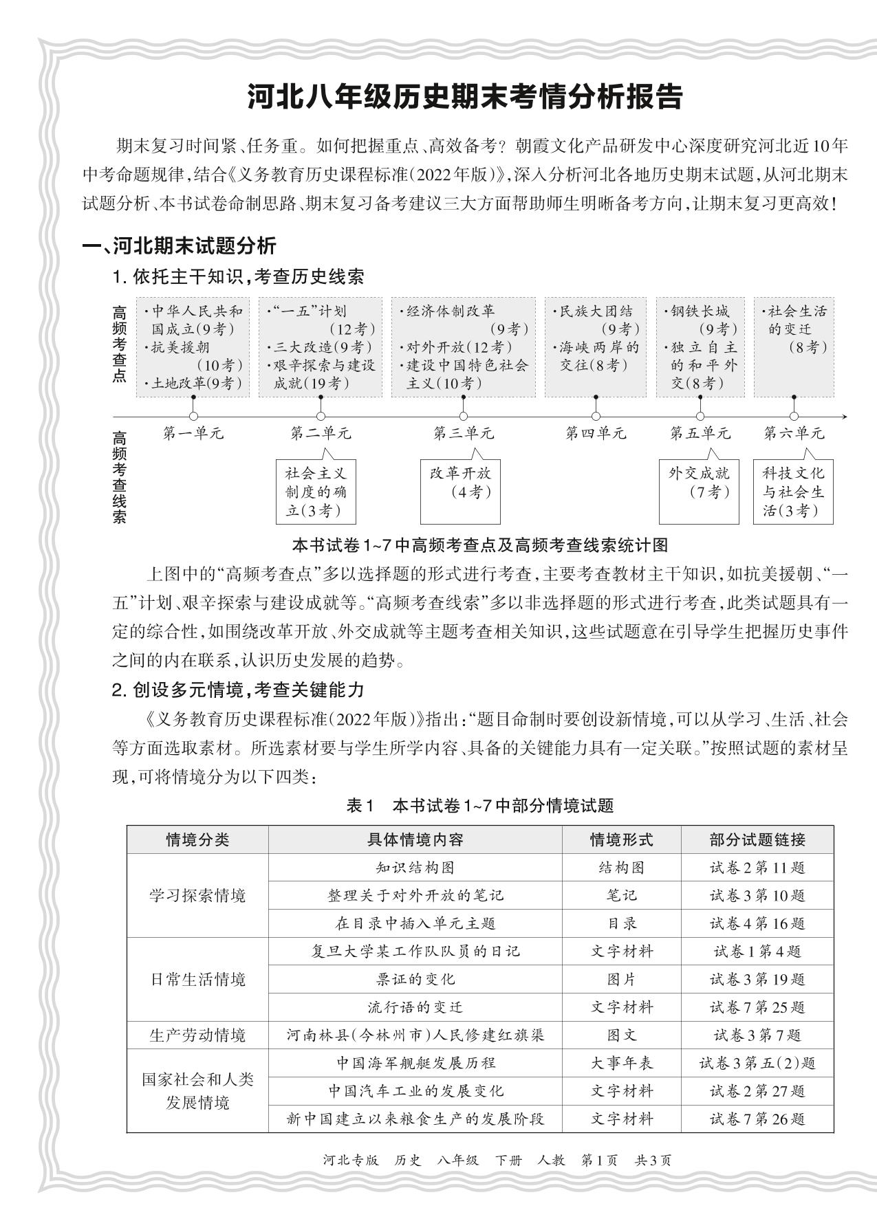 初中历史人教版八年级期末考情分析报告(2024春河北)