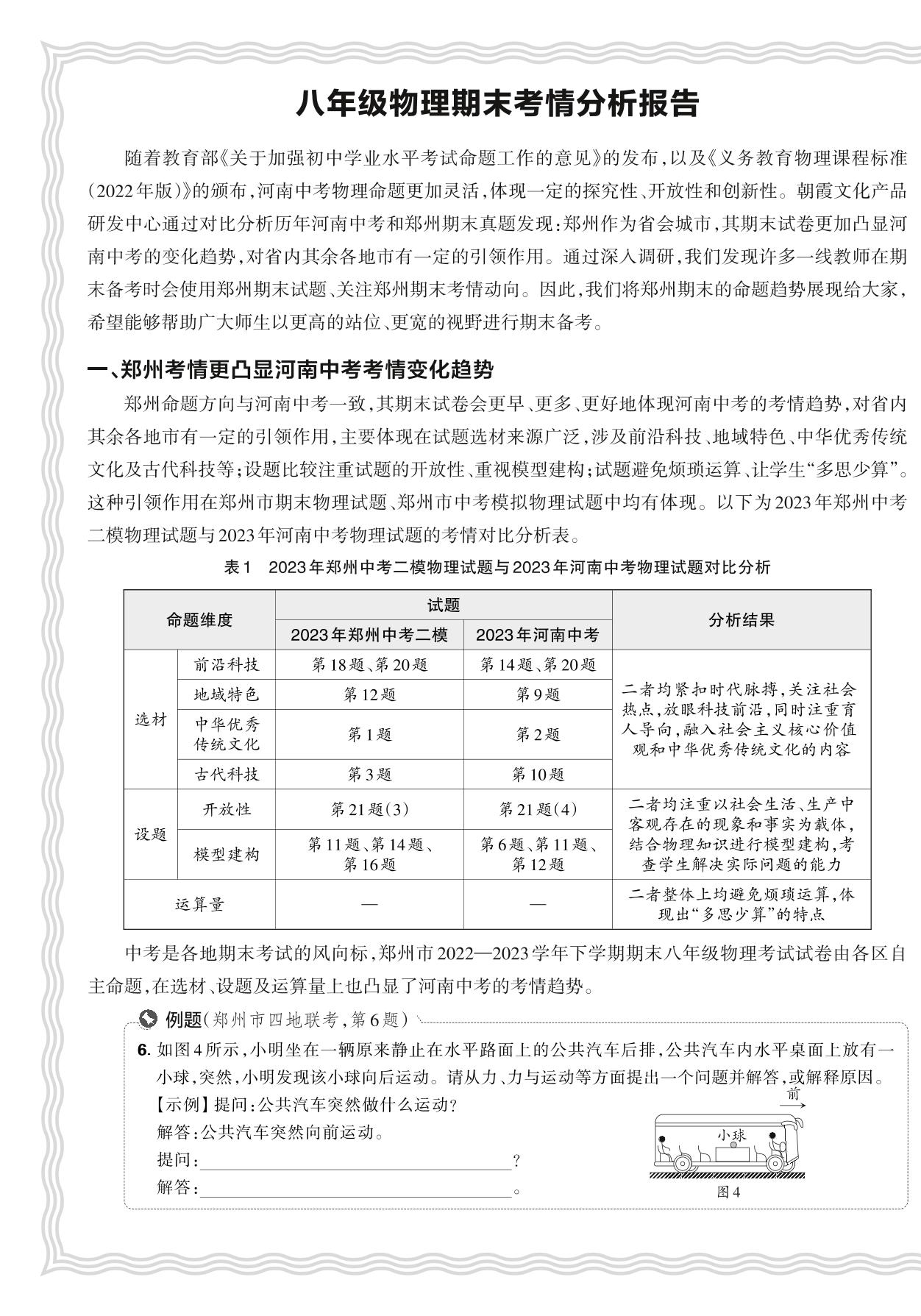 初中物理沪科版八年级期末考情分析报告(2024春郑州)