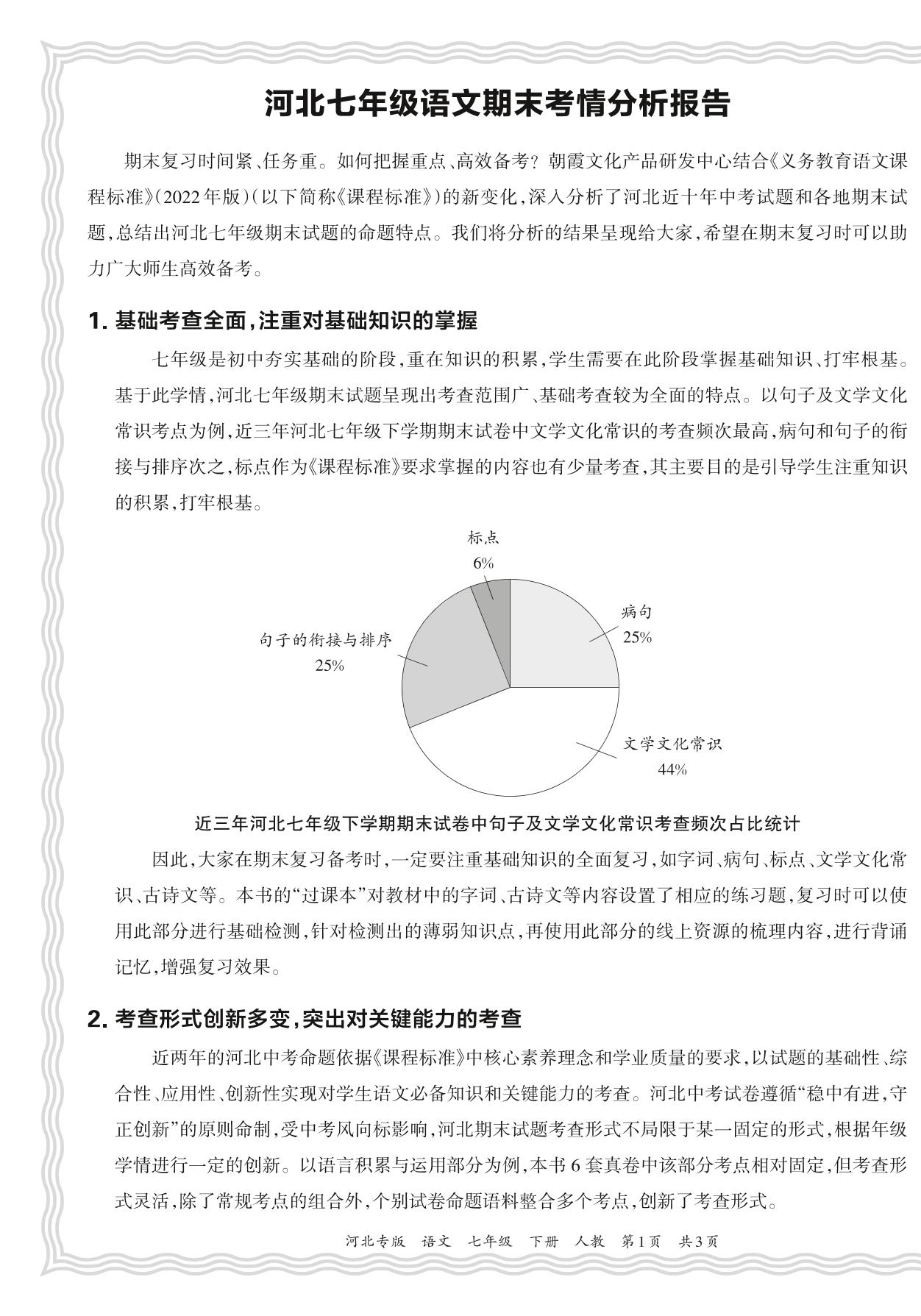 初中语文人教版七年级期末考情分析报告(2024春河北)