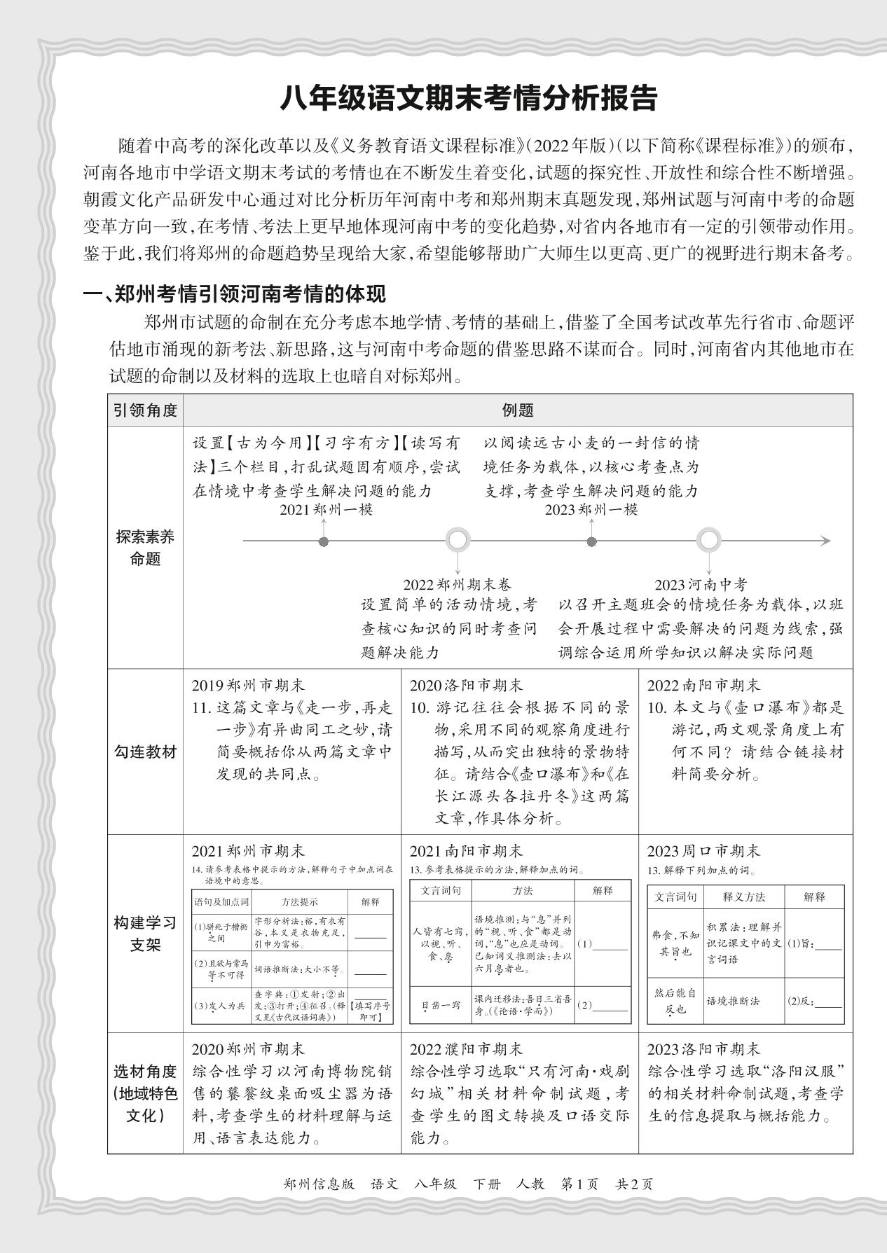 初中语文人教版八年级期末考情分析报告(2024春郑州)