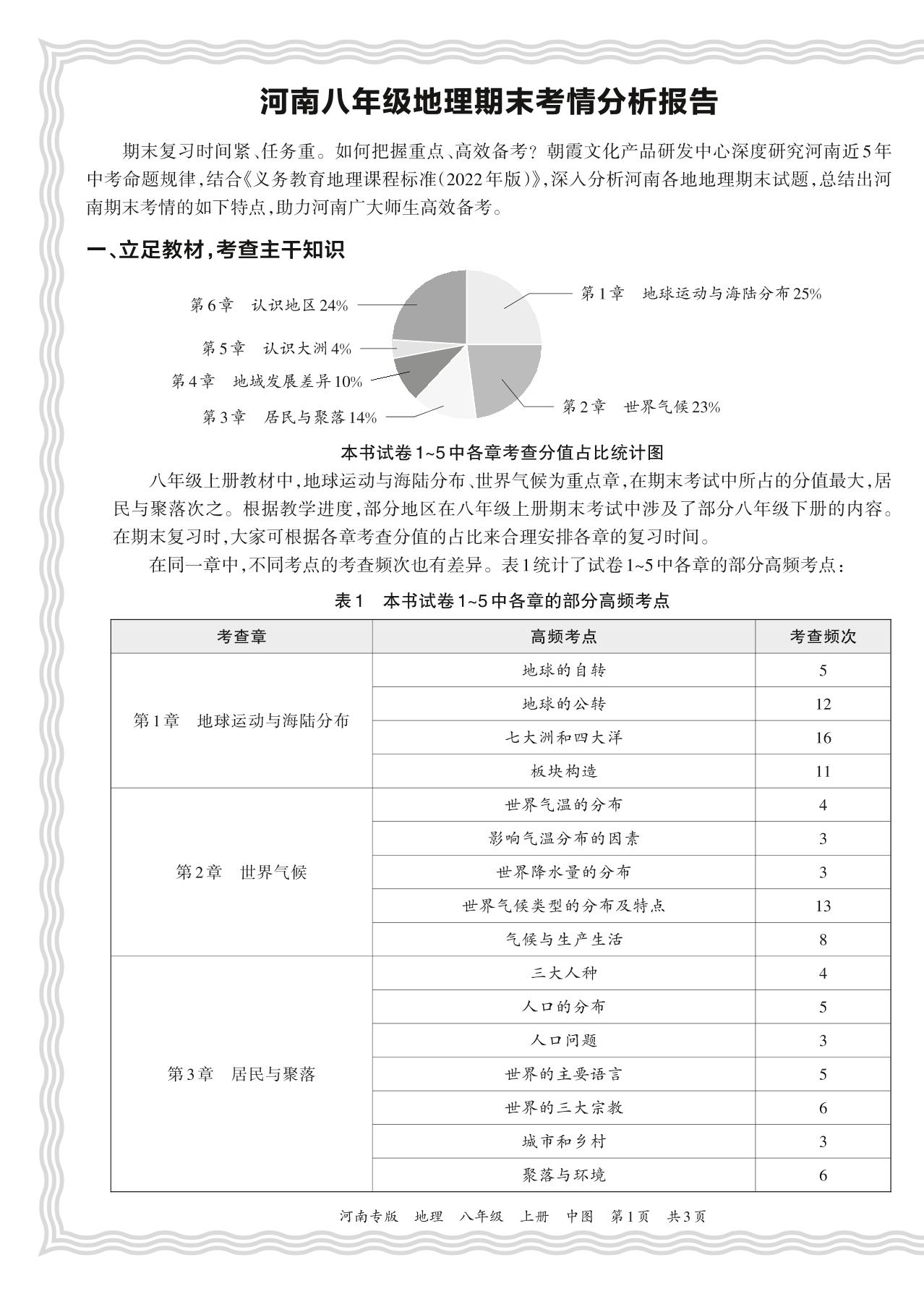 初中地理中图版八年级期末考情分析报告(2023秋河南)