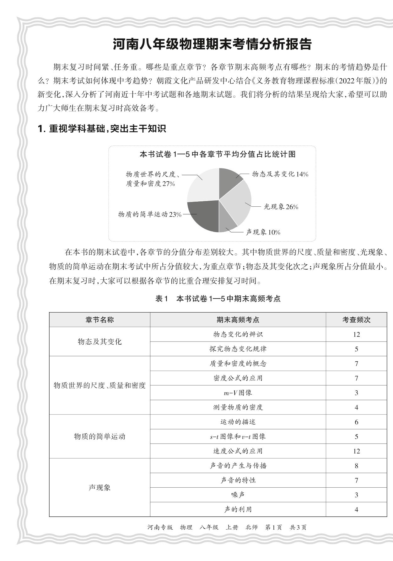 初中物理北师版八年级期末考情分析报告(2023秋河南)
