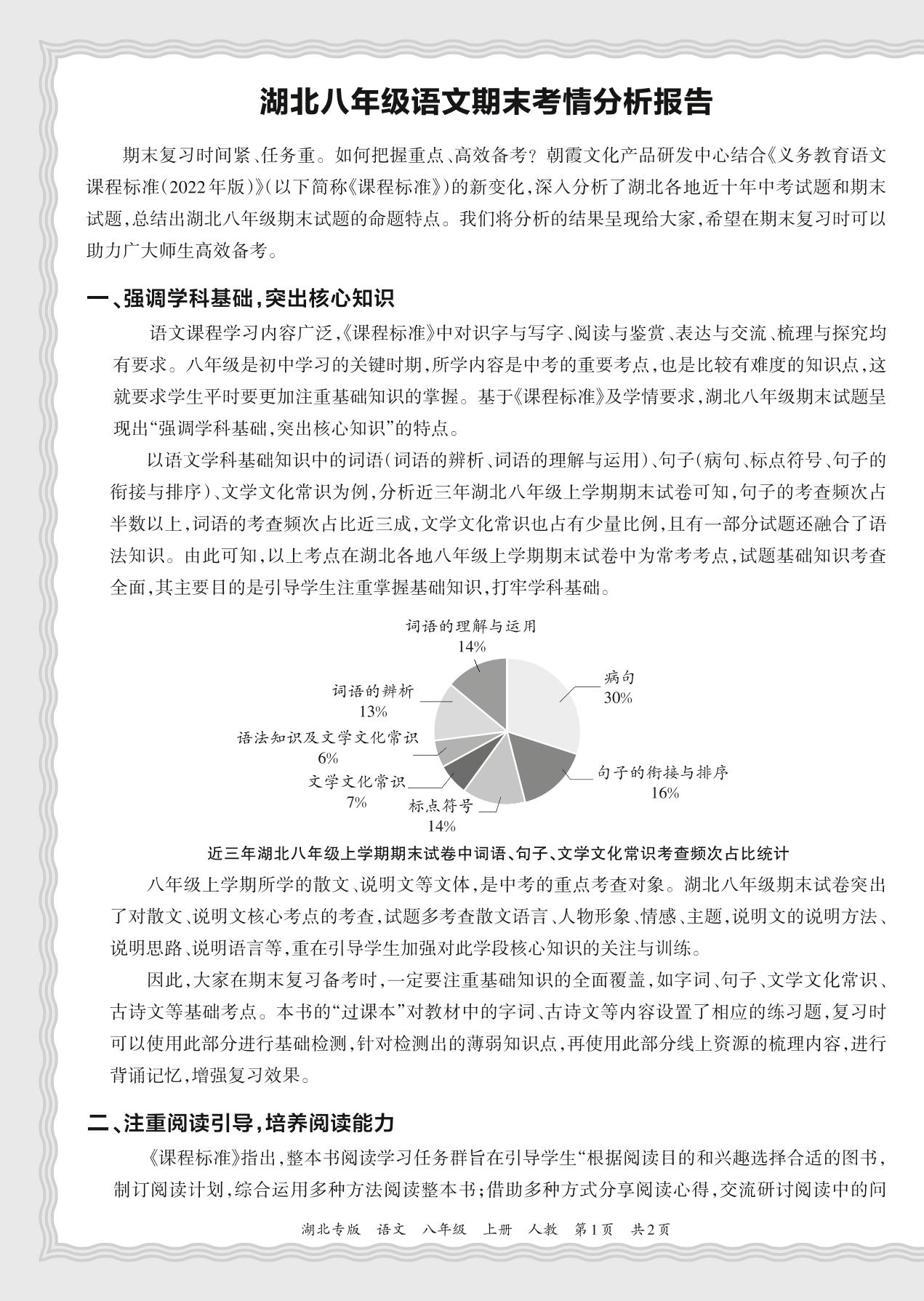 初中语文人教版八年级期末考情分析报告(2023秋湖北)