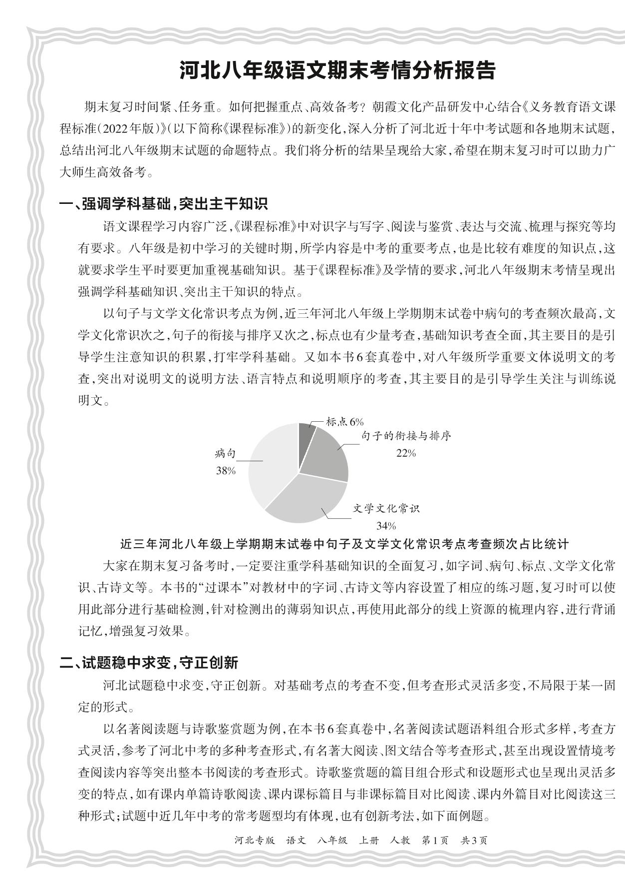 初中语文人教版八年级期末考情分析报告(2023秋河北)