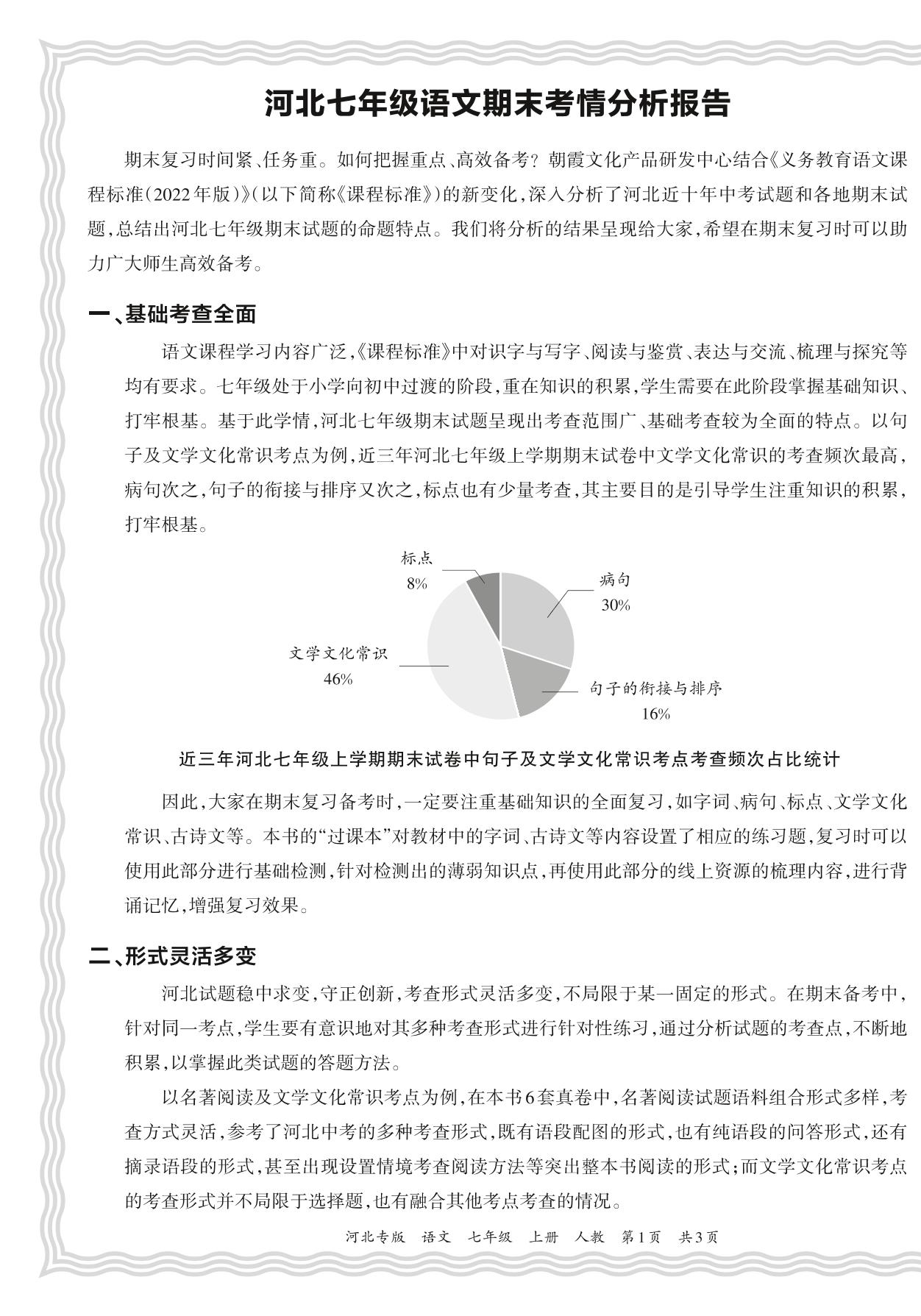 初中语文人教版七年级期末考情分析报告(2023秋河北)
