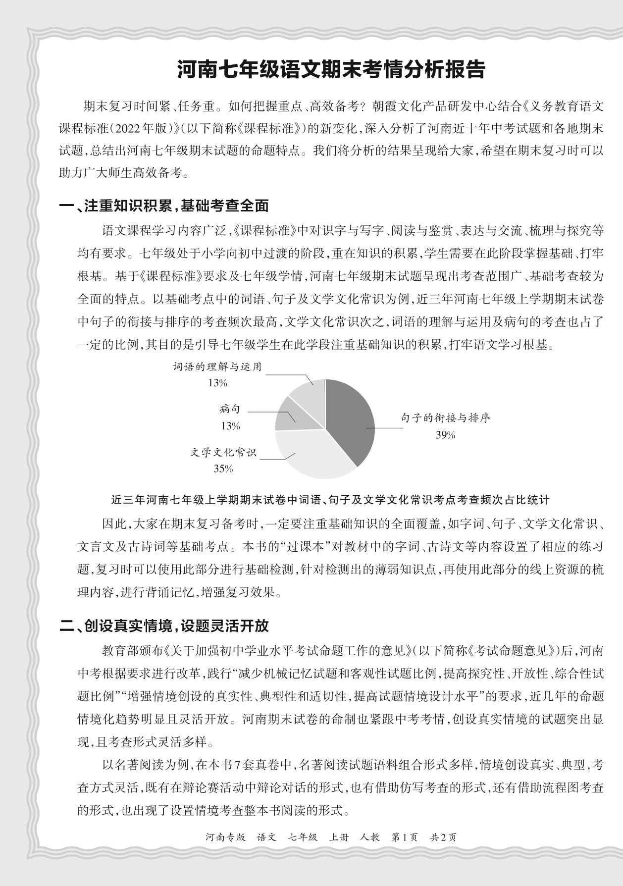 初中语文人教版七年级期末考情分析报告(2023秋河南)