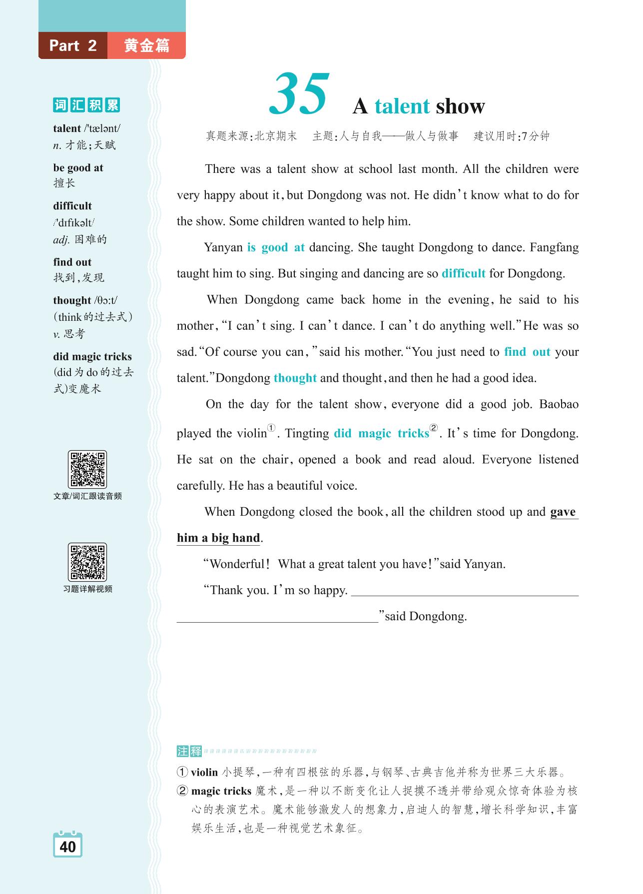 六年级英语阅读超详解 Part 2 黄金篇:35 A talent show