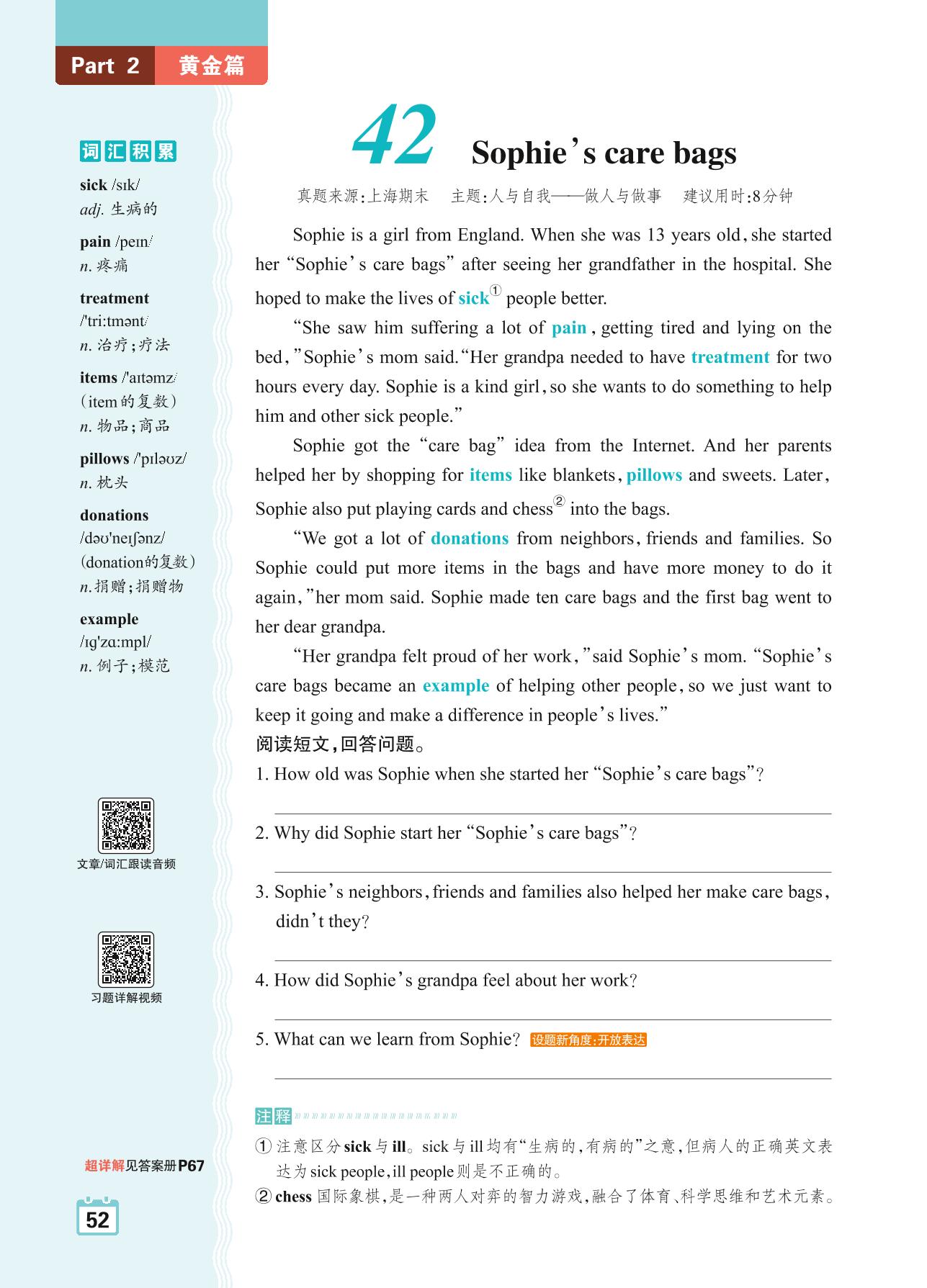 六年级英语阅读超详解 Part 2 黄金篇:42 Sophie's care bags