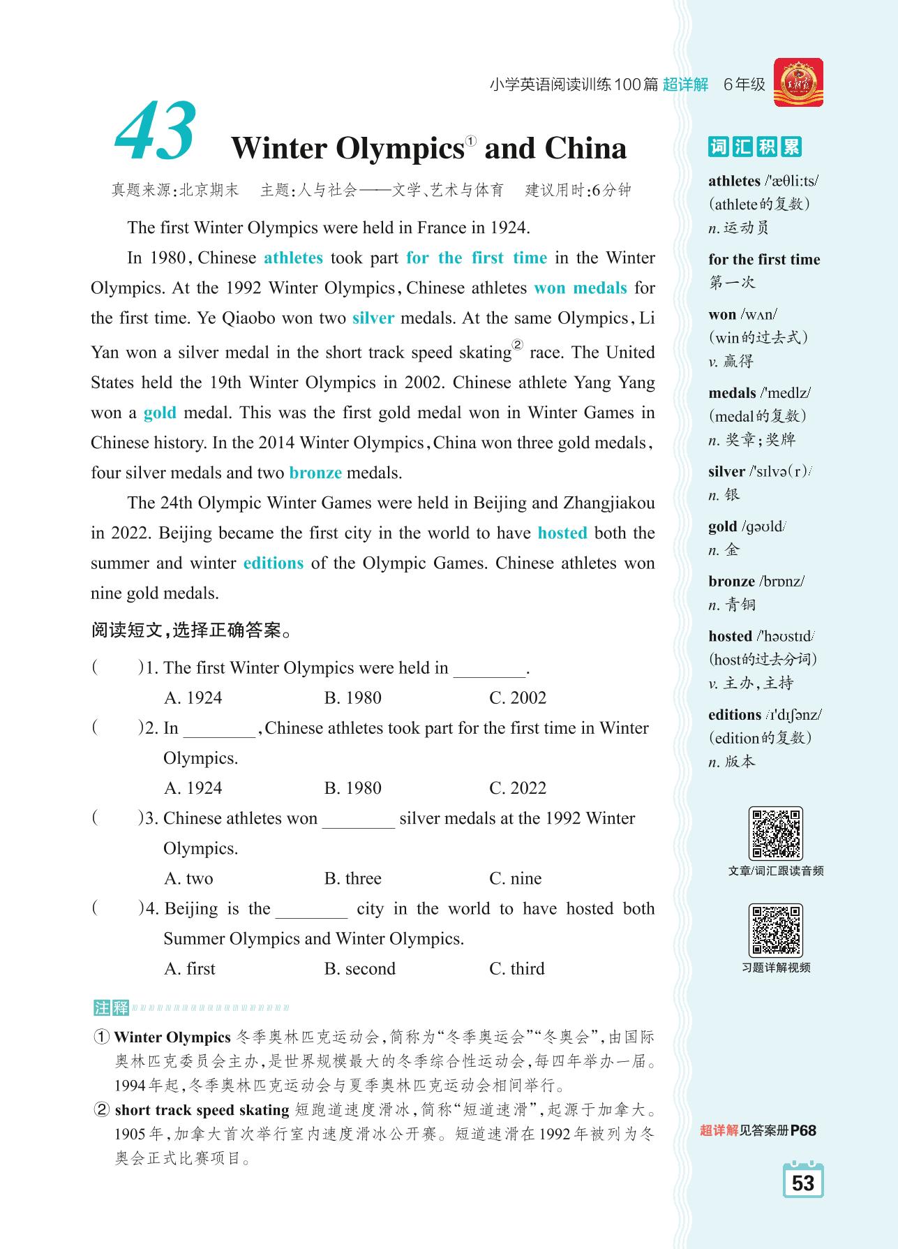 六年级英语阅读超详解 Part 2 黄金篇:43 Winter Olympics and China