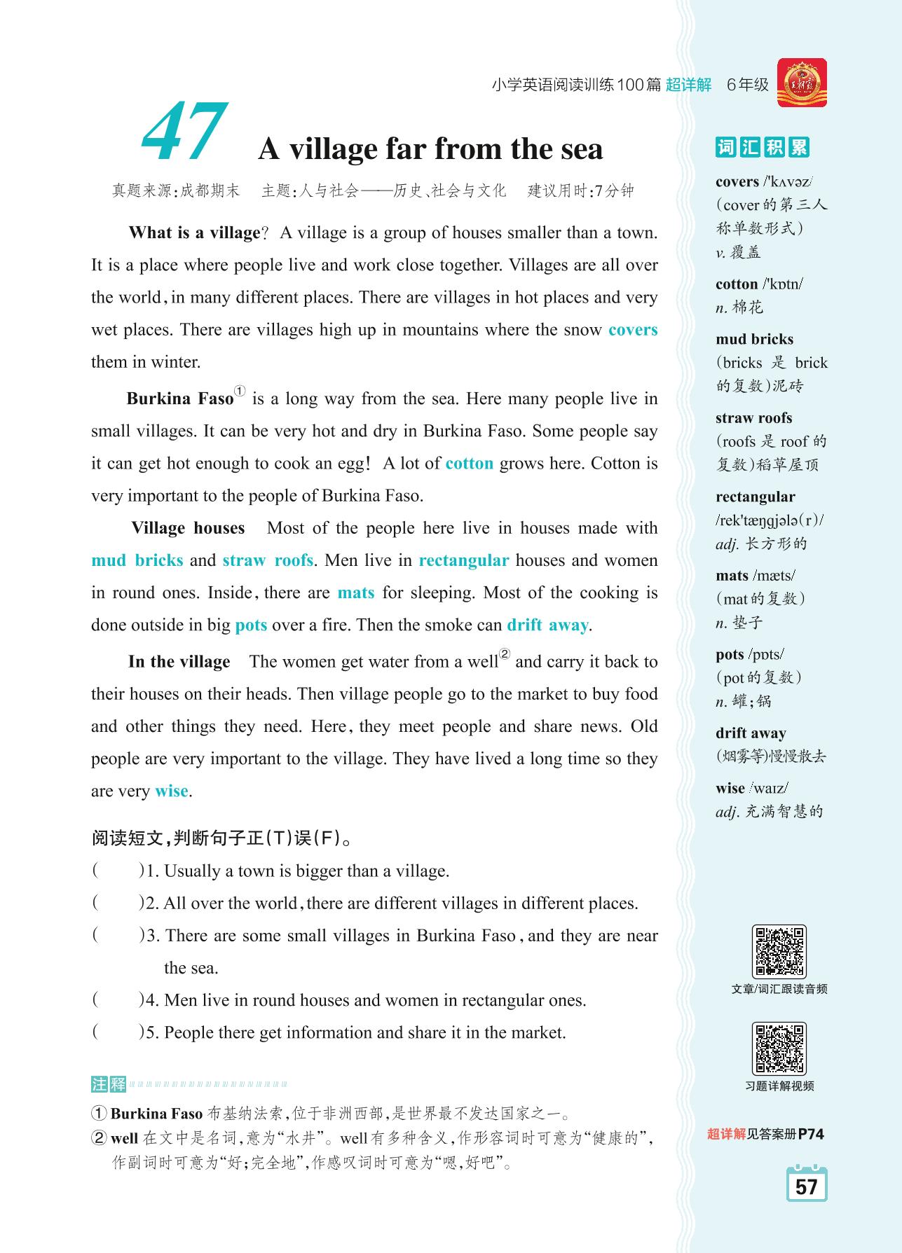 六年级英语阅读超详解 Part 2 黄金篇:47 A village far from the sea