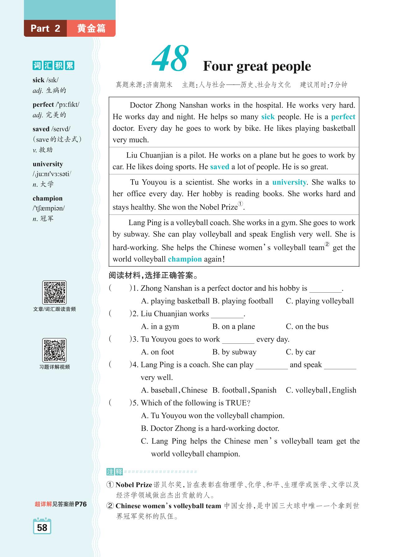 六年级英语阅读超详解 Part 2 黄金篇:48 Four great people
