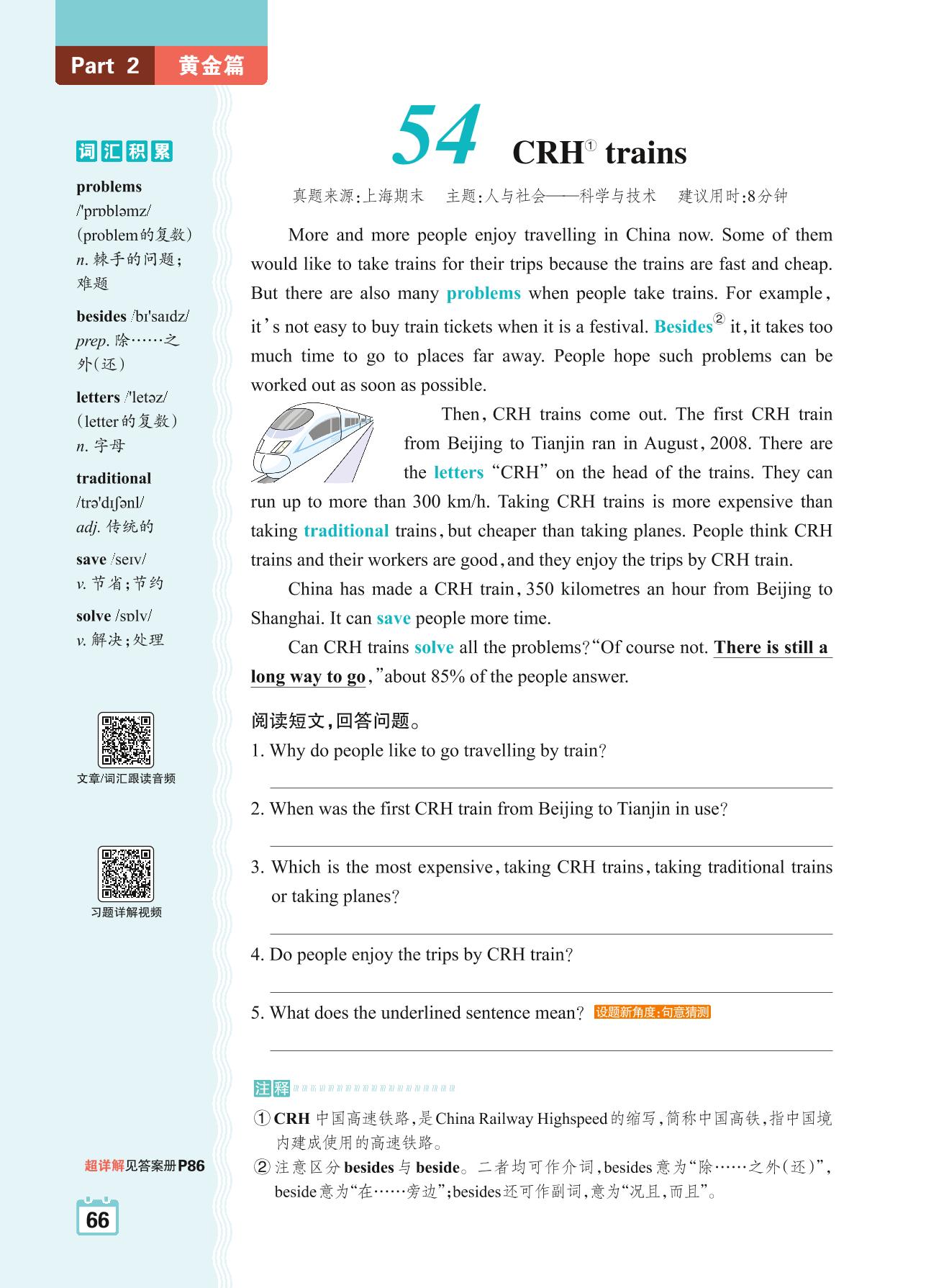 六年级英语阅读超详解 Part 2 黄金篇:54 CRH trains