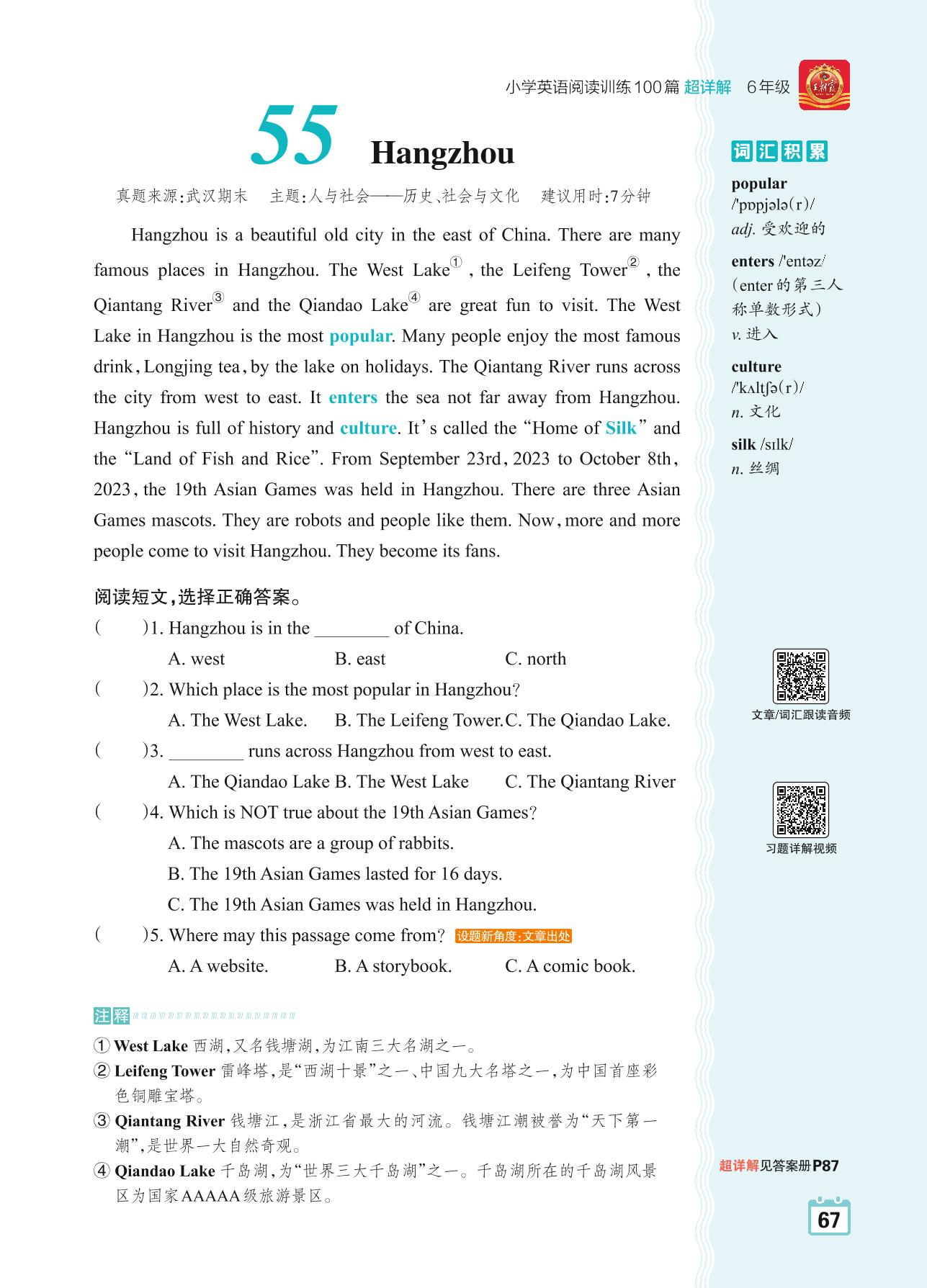 六年级英语阅读超详解 Part 2 黄金篇:55 Hangzhou