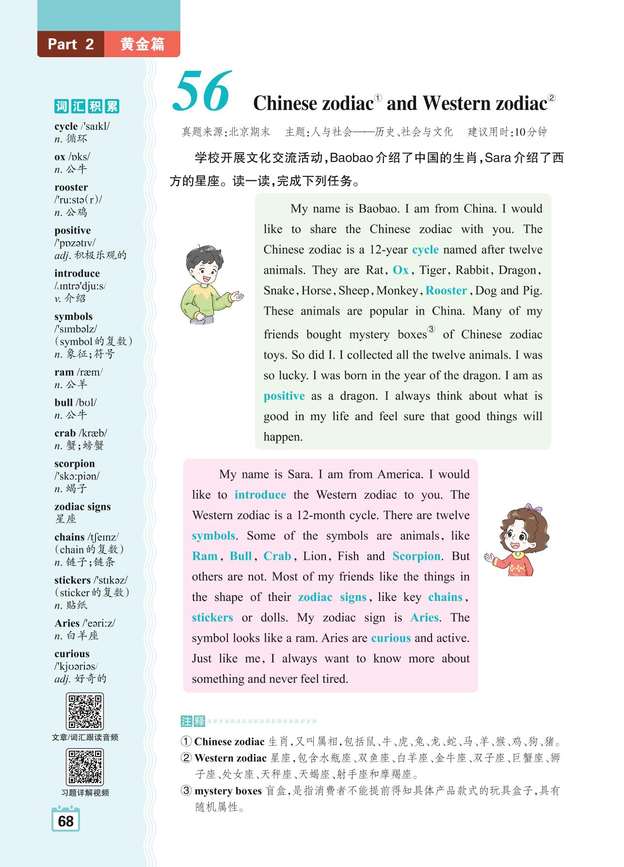 六年级英语阅读超详解 Part 2 黄金篇:56 Chinese zodiac and Western zodiac