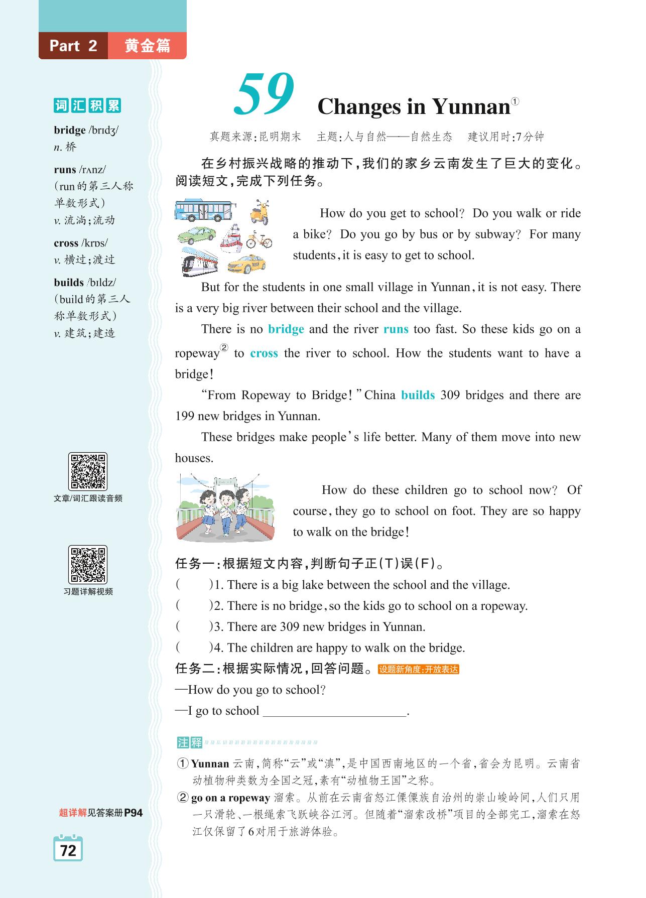 六年级英语阅读超详解 Part 2 黄金篇:59 Changes in Yunnan