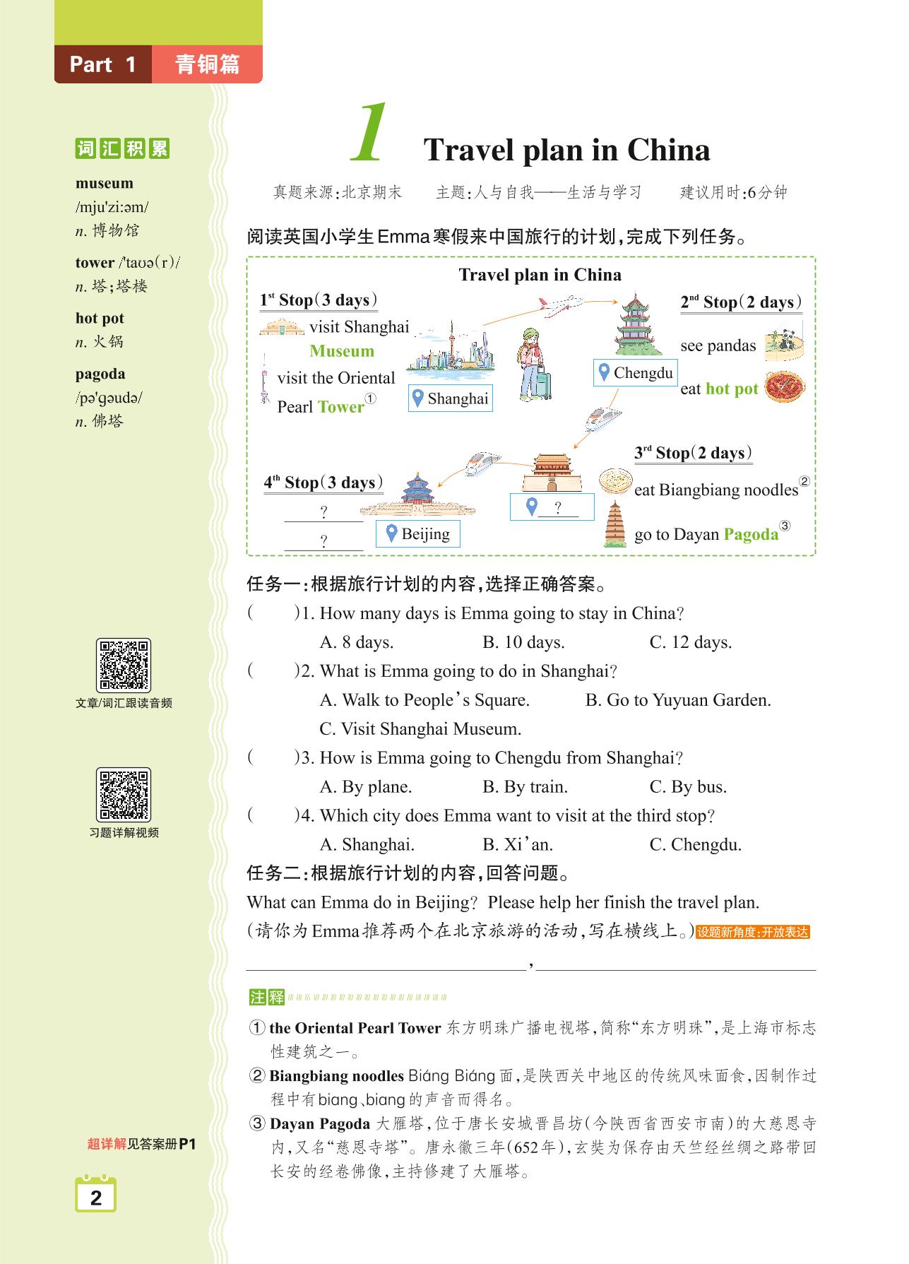 六年级英语阅读超详解 Part 1 青铜篇:1 Travel plan in China