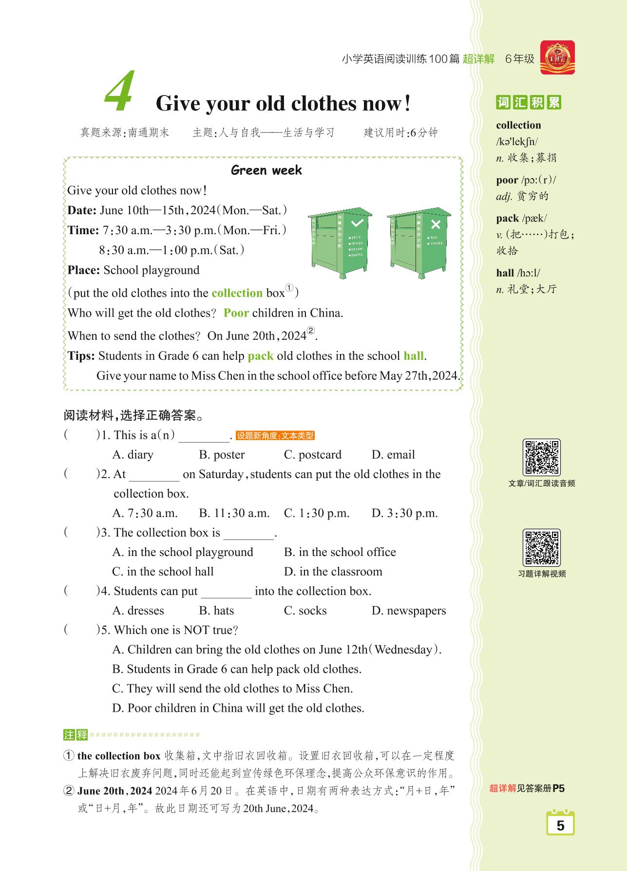 六年级英语阅读超详解 Part 1 青铜篇:4 Give your old clothes now!