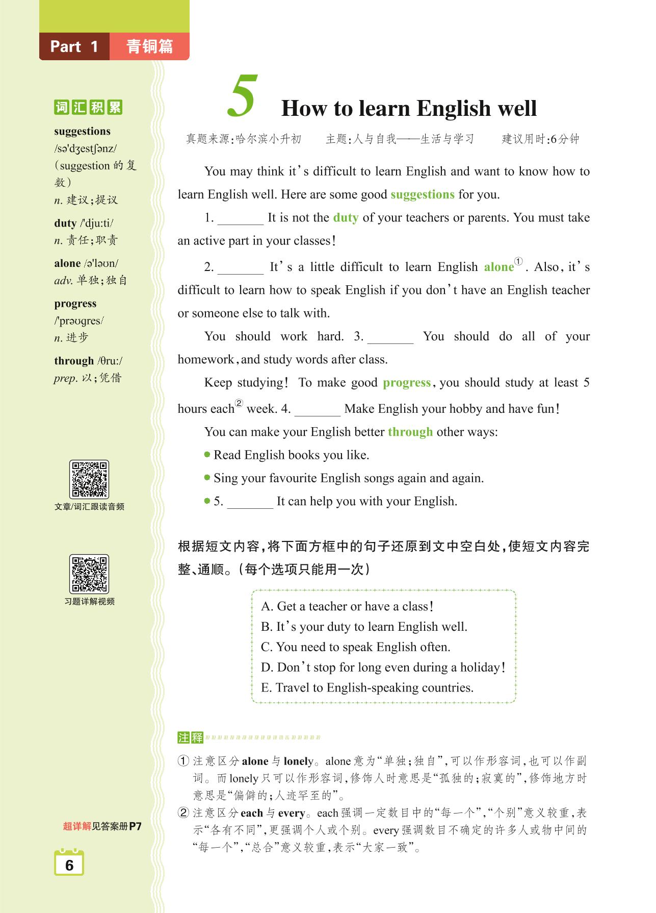 六年级英语阅读超详解 Part 1 青铜篇:5 How to learn English well