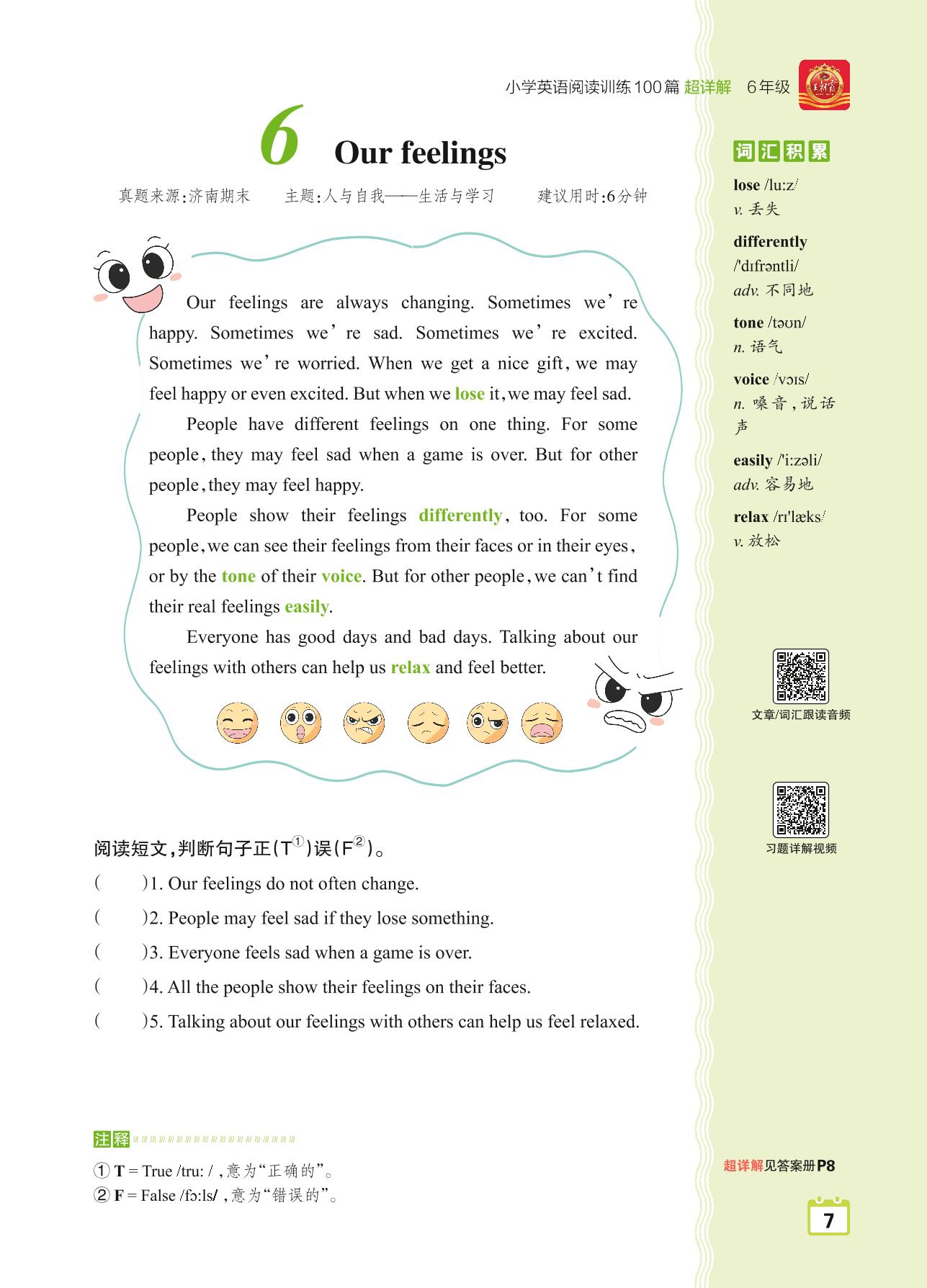 六年级英语阅读超详解 Part 1 青铜篇:6 Our feelings