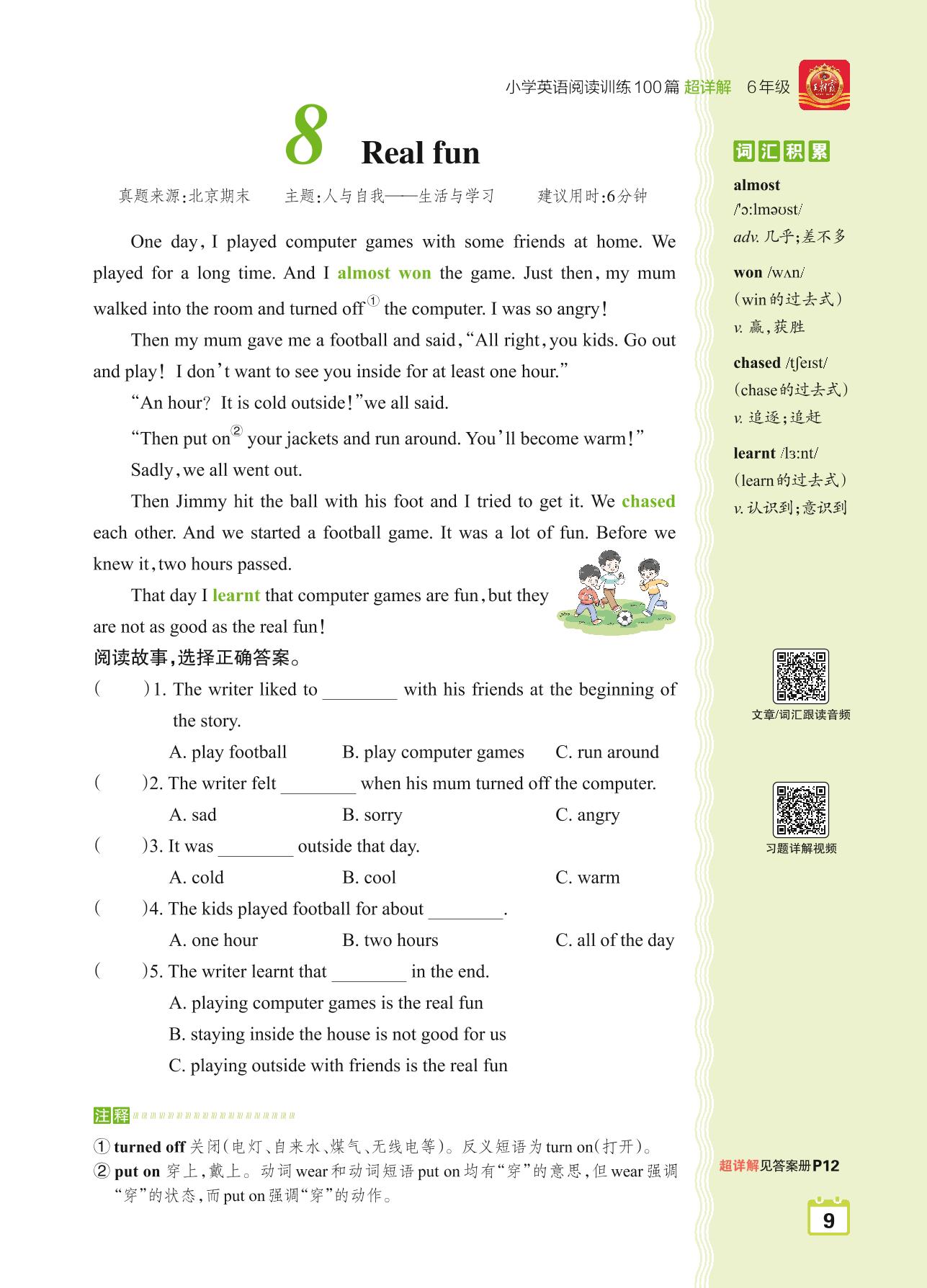 六年级英语阅读超详解 Part 1 青铜篇:8 Real fun