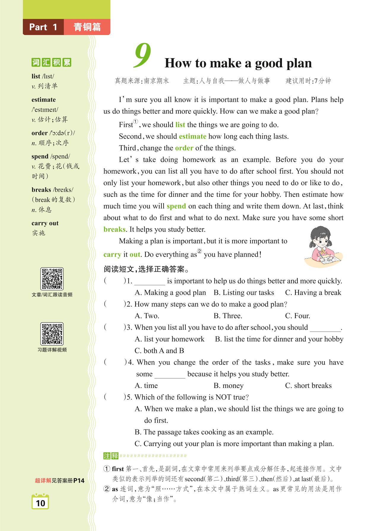 六年级英语阅读超详解 Part 1 青铜篇:9 How to make a good plan