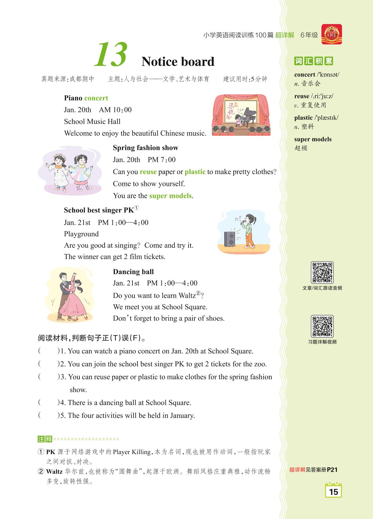 六年级英语阅读超详解 Part 1 青铜篇:13 Notice board
