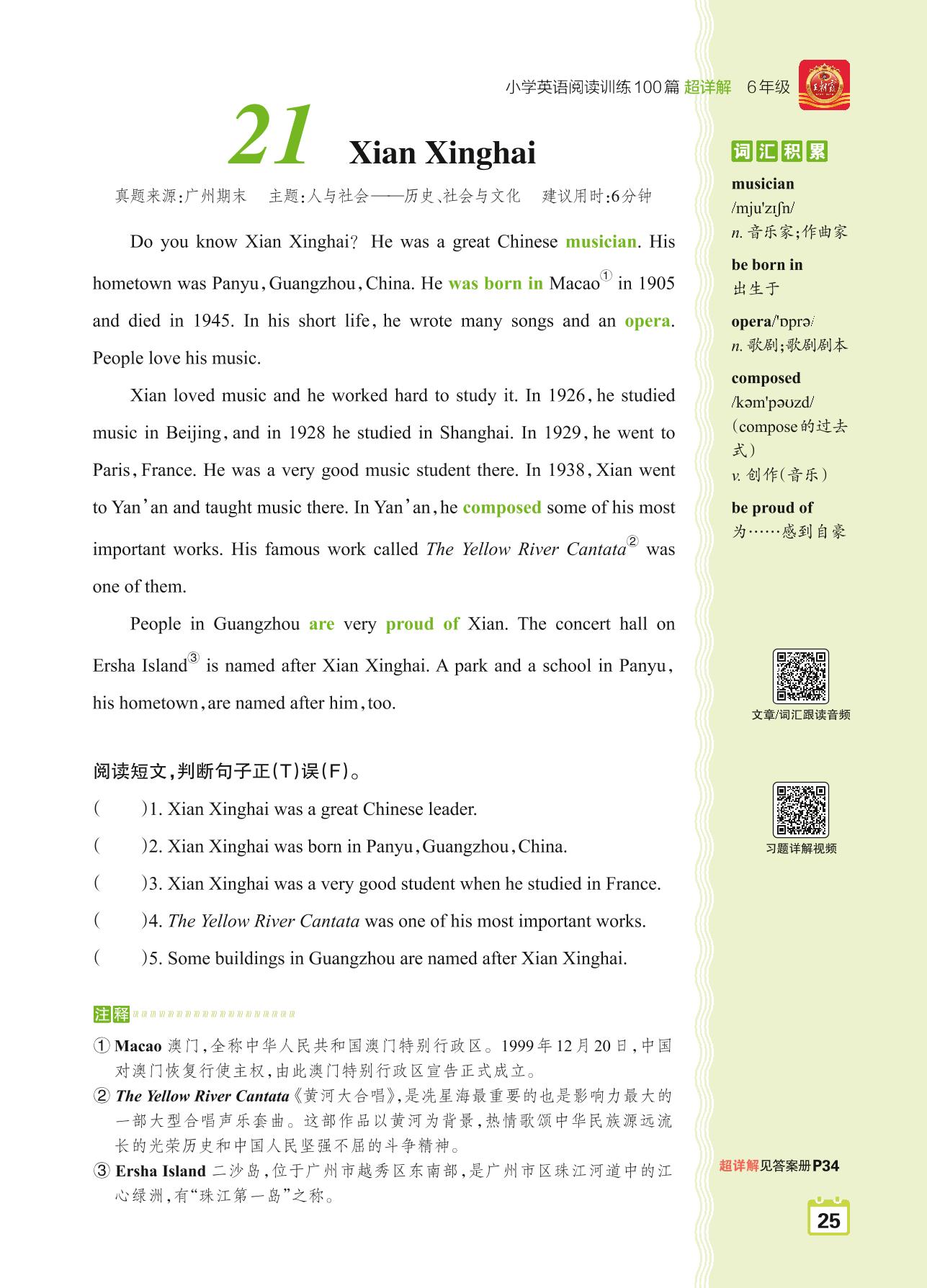 六年级英语阅读超详解 Part 1 青铜篇:21 Xian Xinghai