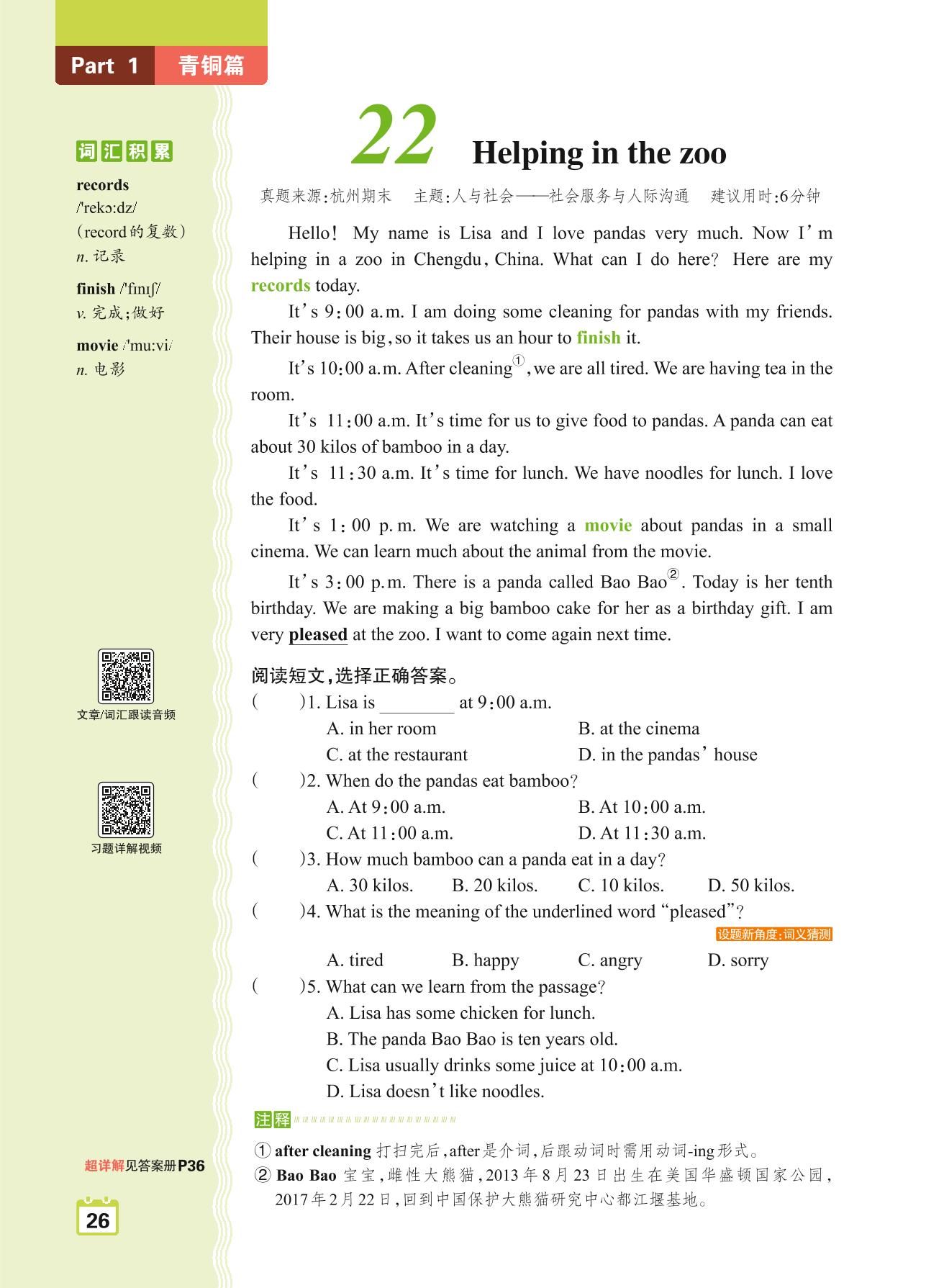 六年级英语阅读超详解 Part 1 青铜篇:22 Helping in the zoo