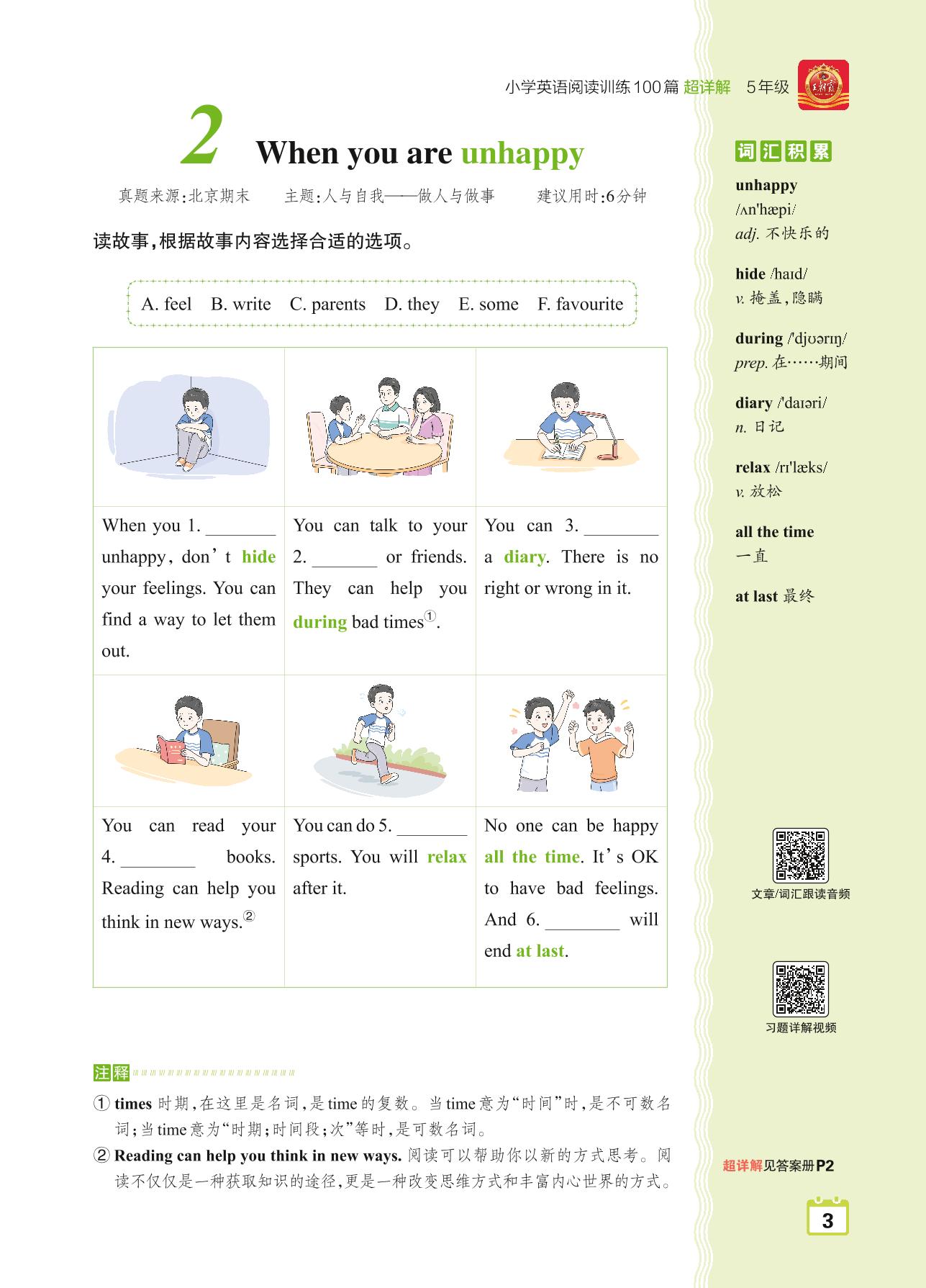 五年级英语阅读超详解 Part1 青铜篇:2 When you are unhappy