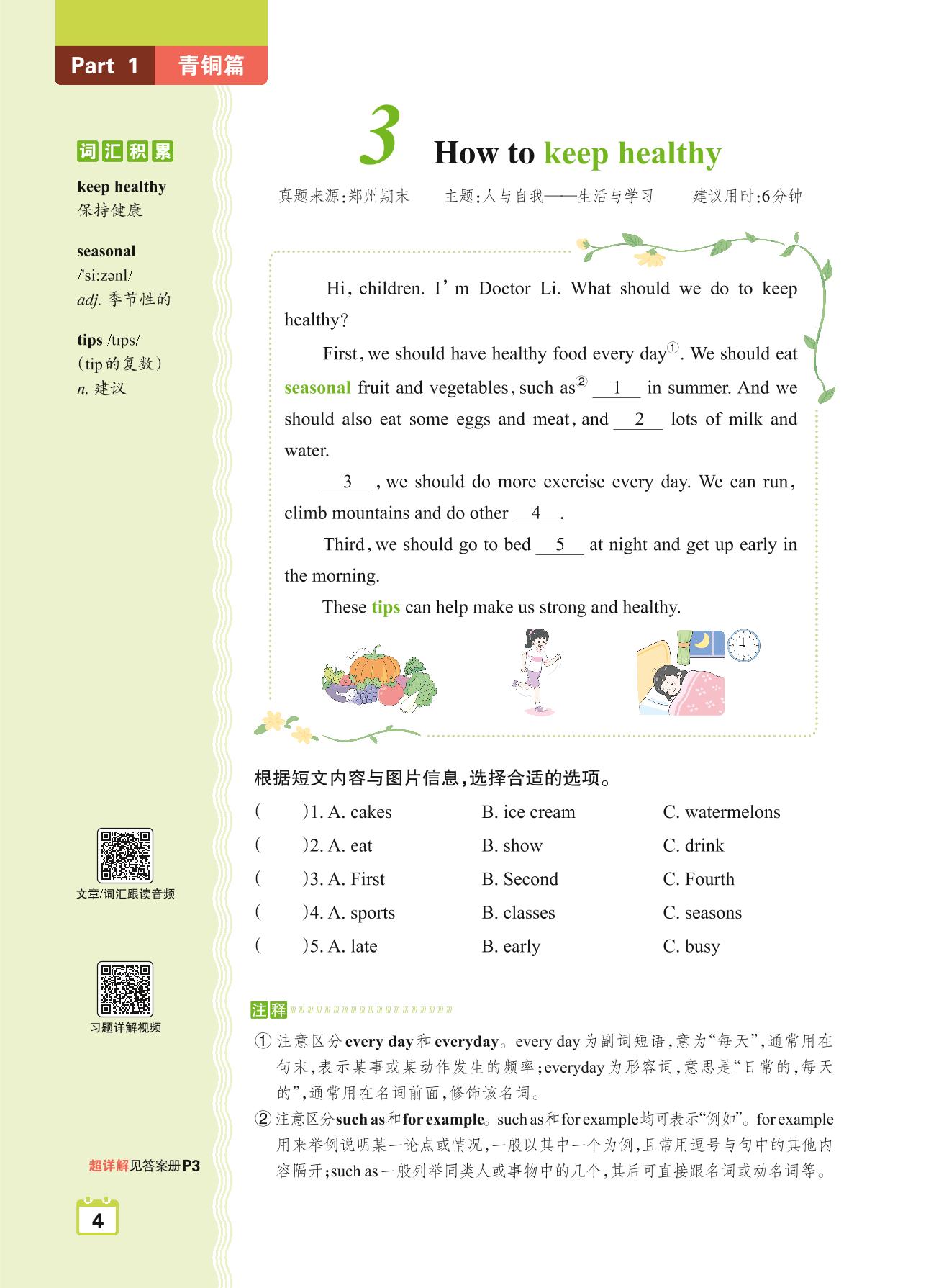 五年级英语阅读超详解 Part1 青铜篇:3 How to keep healthy