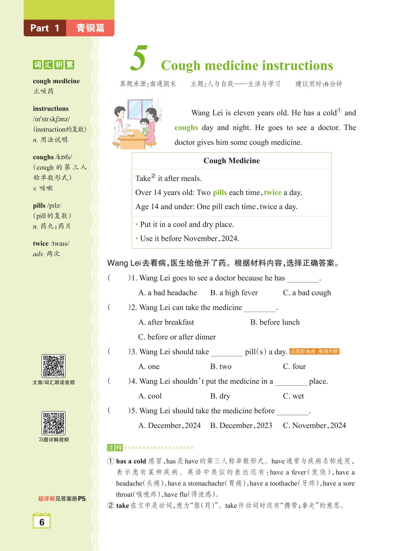 五年级英语阅读超详解 Part1 青铜篇:5 Cough medicine instructions