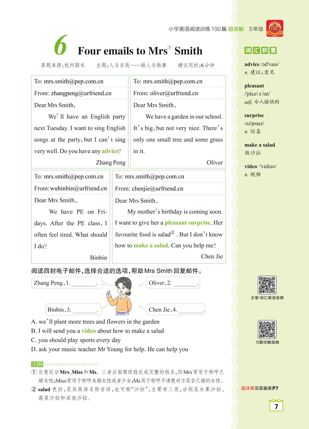 五年级英语阅读超详解 Part1 青铜篇:6 Four emails to Mrs Smith