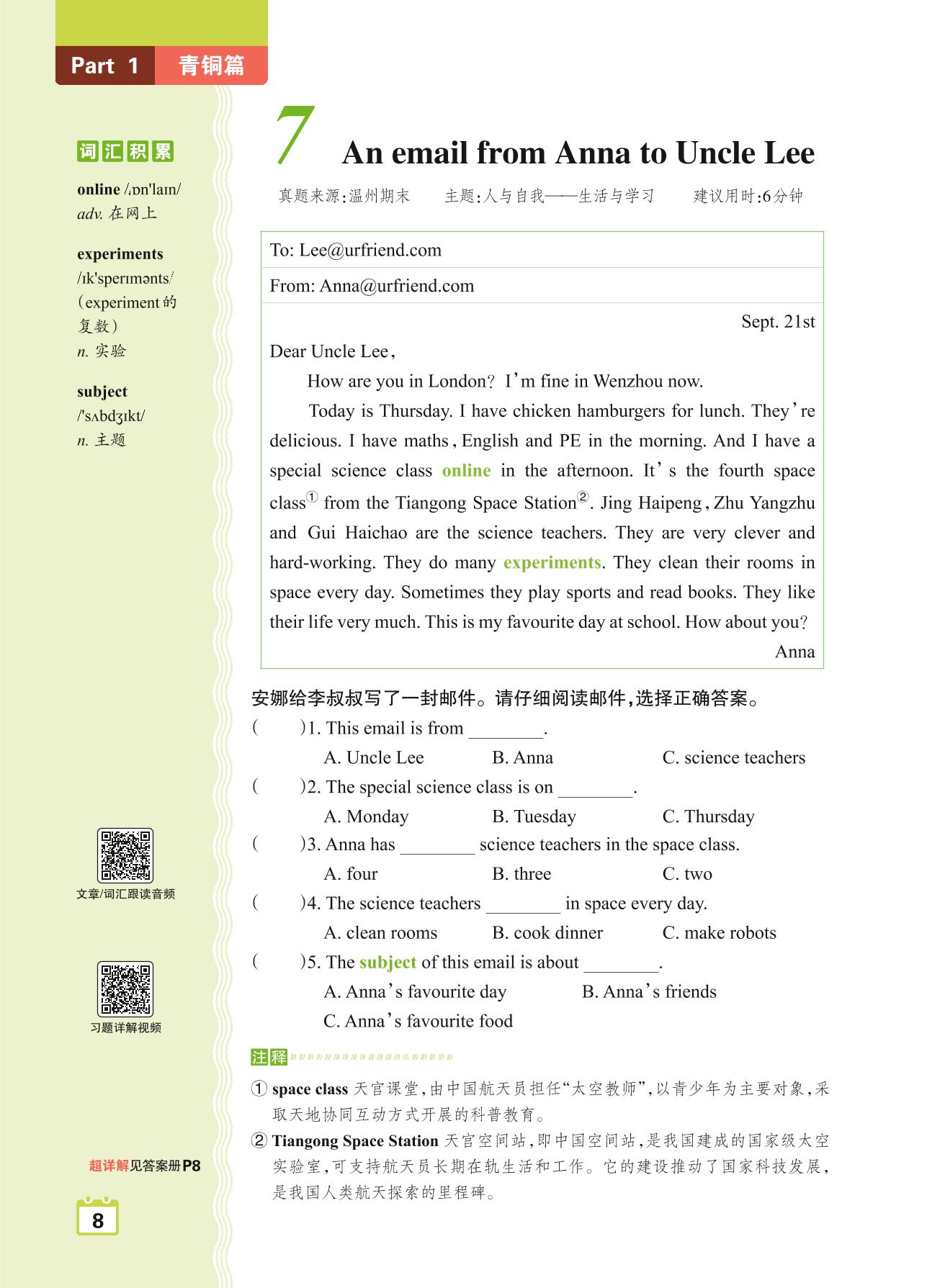 五年级英语阅读超详解 Part1 青铜篇:7 An email from Anna to Uncle Lee