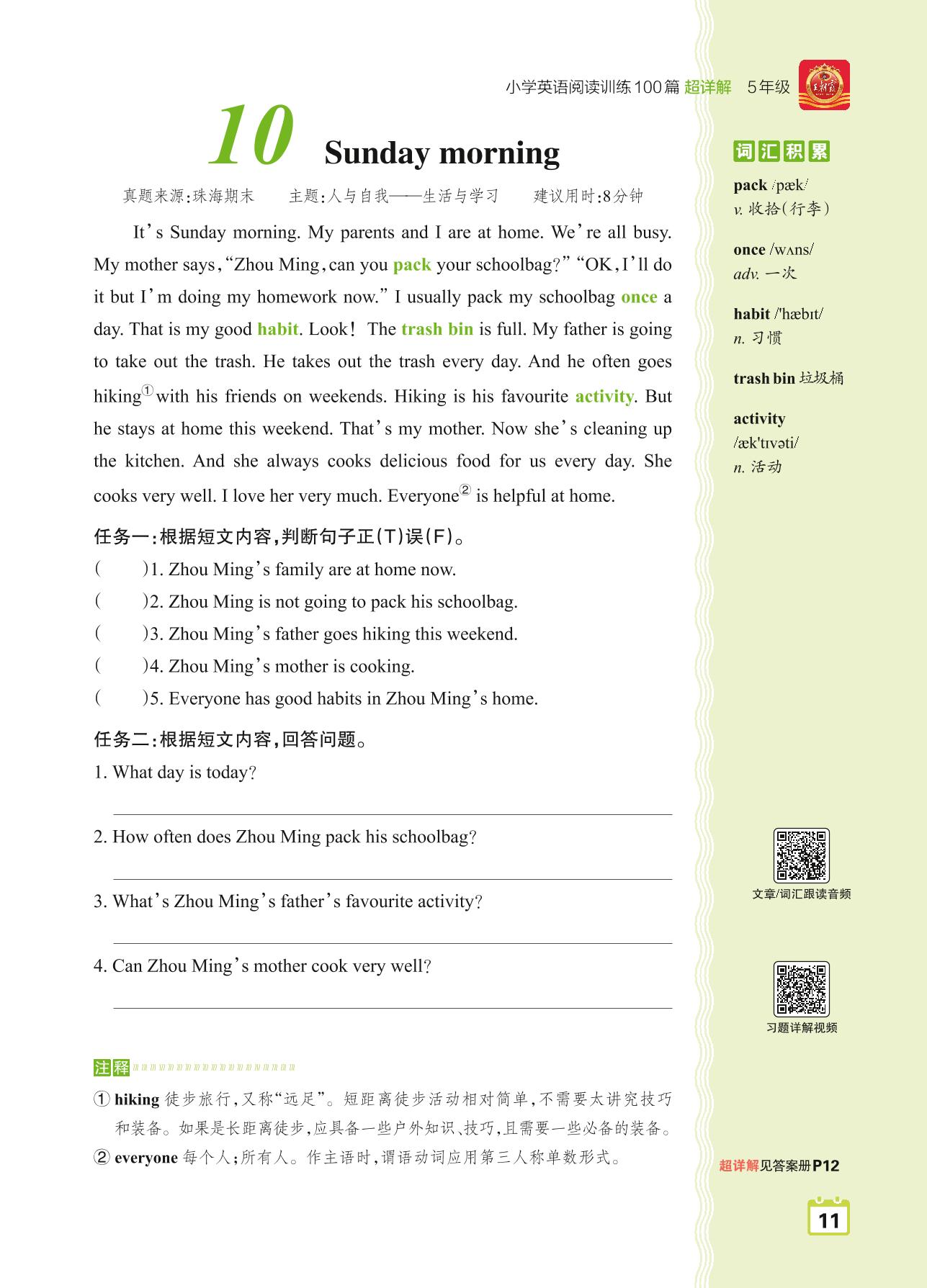 五年级英语阅读超详解 Part1 青铜篇:10 Sunday morning