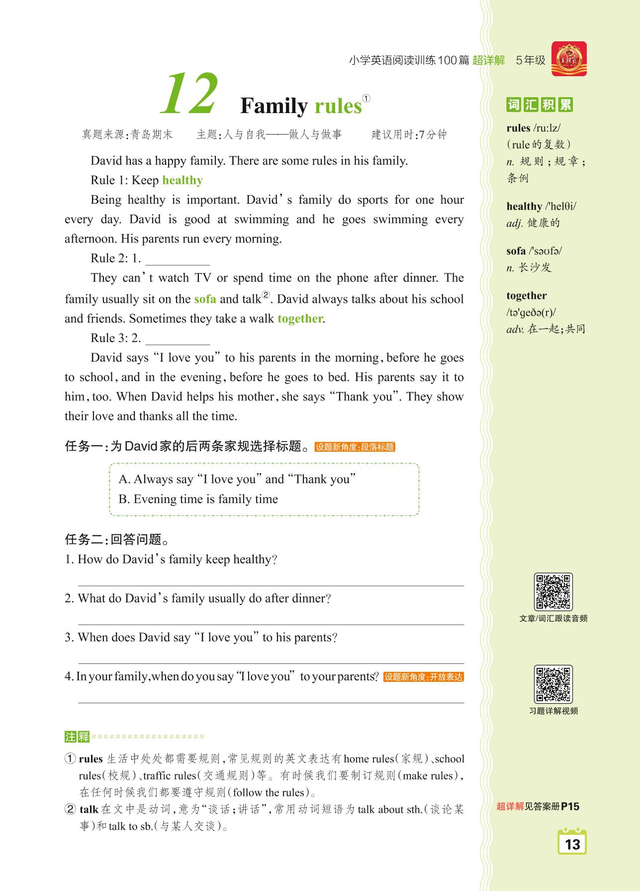 五年级英语阅读超详解 Part1 青铜篇:12 Family rules