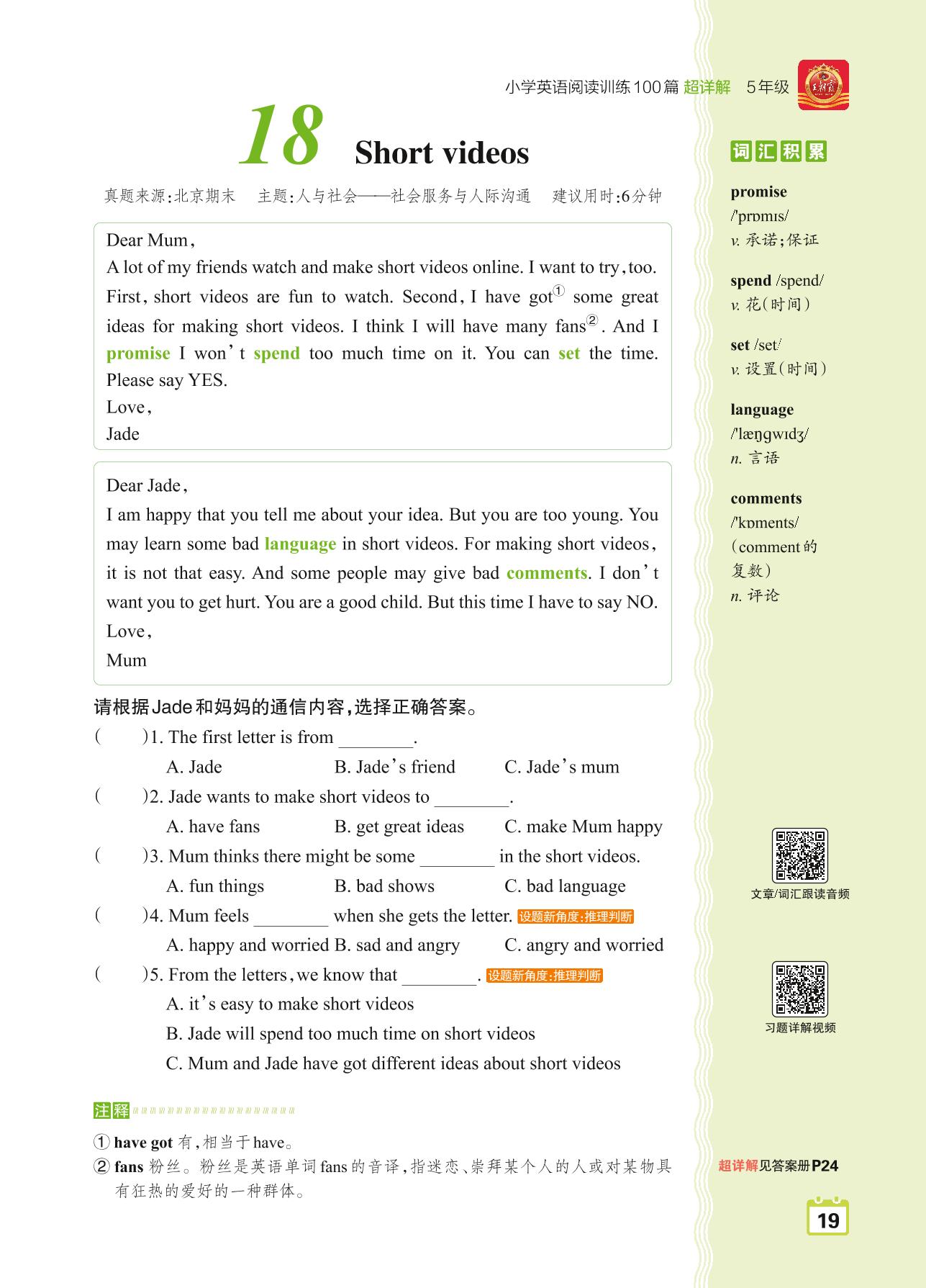 五年级英语阅读超详解 Part1 青铜篇:18 Short videos