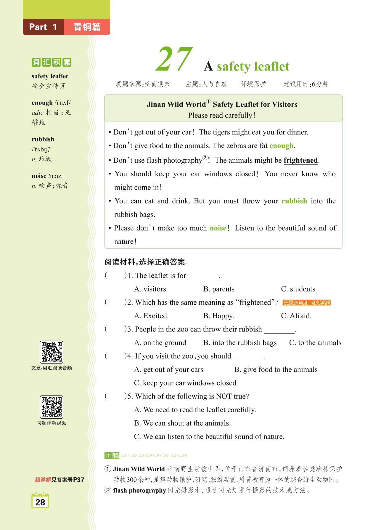 五年级英语阅读超详解 Part1 青铜篇:27 A safety leaflet