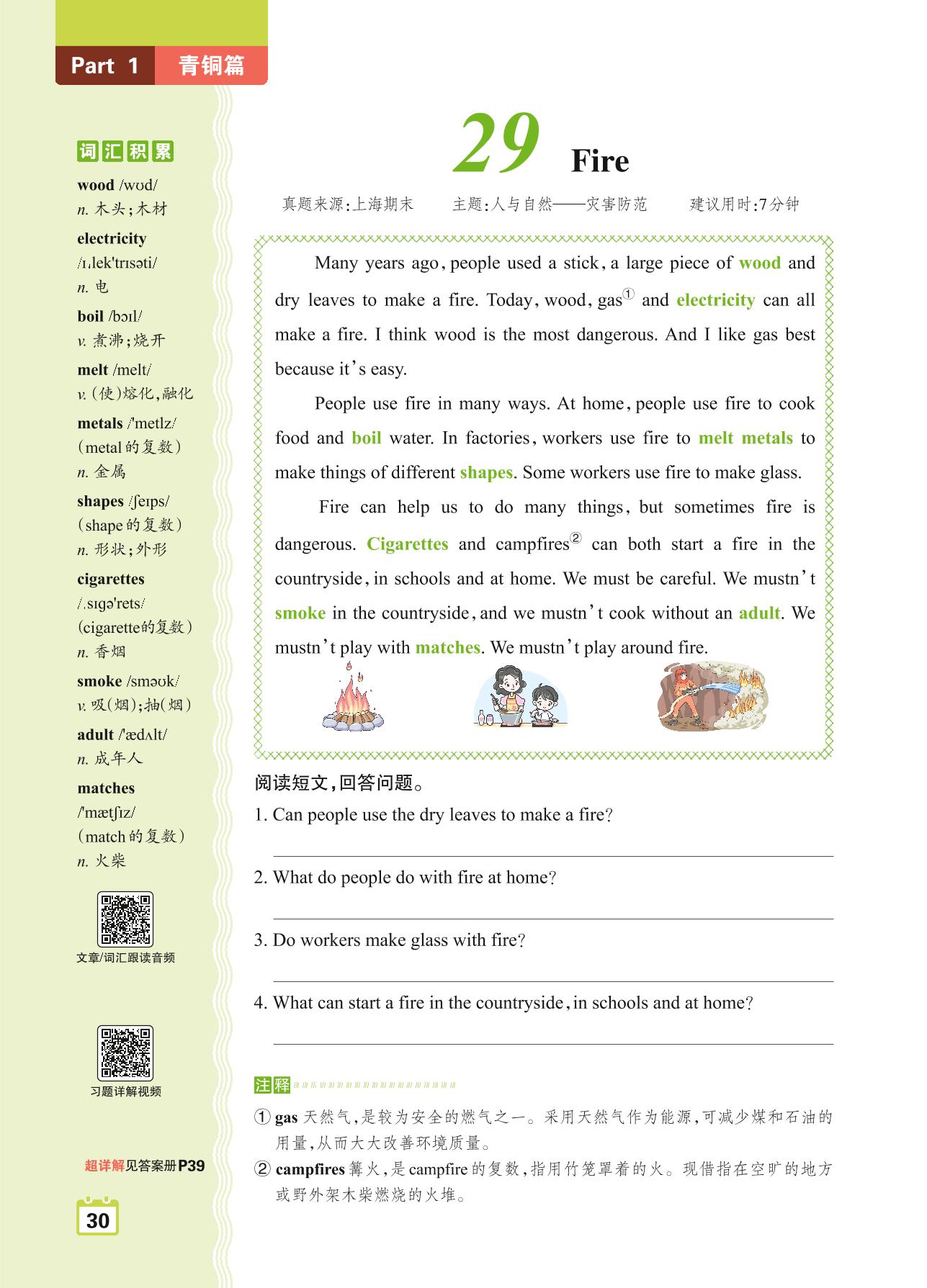 五年级英语阅读超详解 Part1 青铜篇:29 Fire