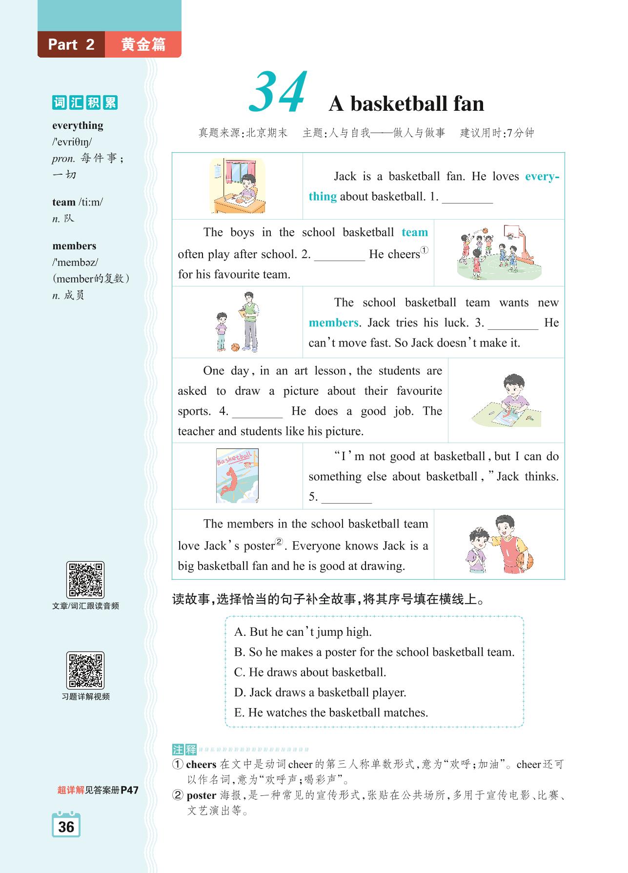 五年级英语阅读超详解 Part2 黄金篇:34 A basketball fan