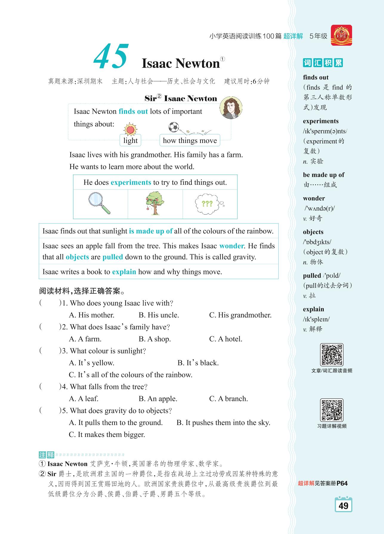五年级英语阅读超详解 Part2 黄金篇:45 Isaac Newton