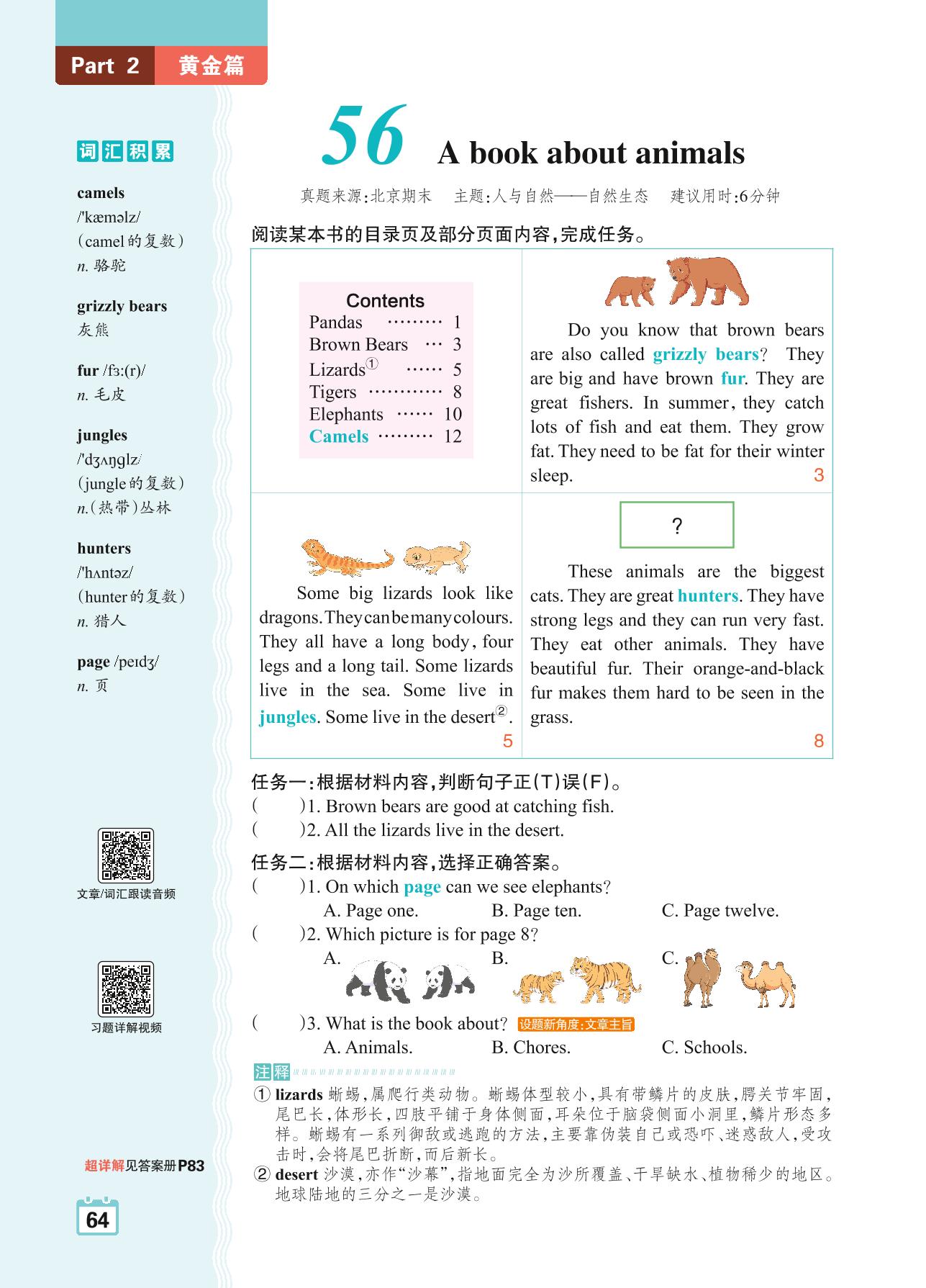 五年级英语阅读超详解 Part2 黄金篇:56 A book about animals