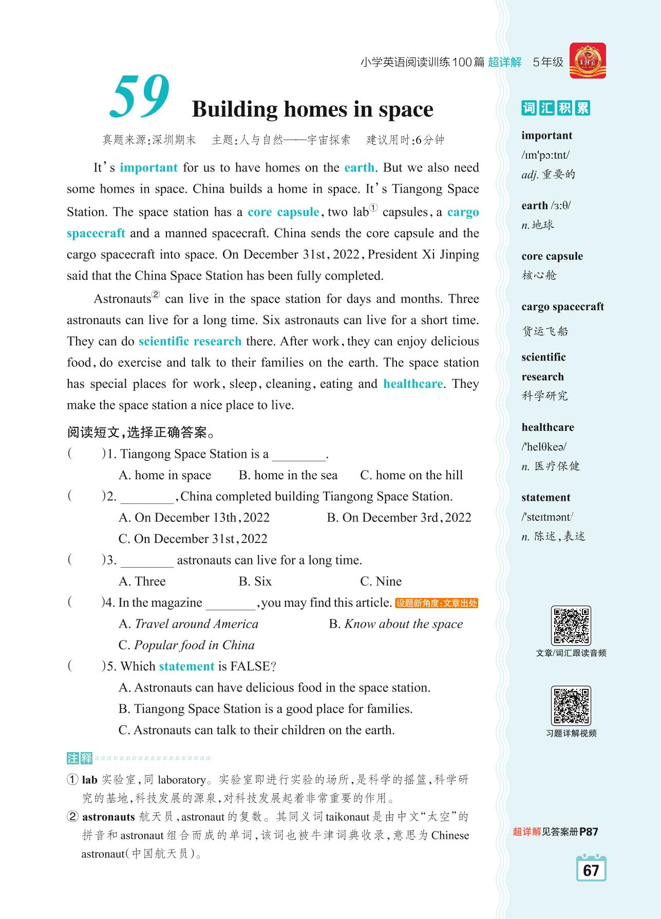 五年级英语阅读超详解 Part2 黄金篇:59 Building homes in space