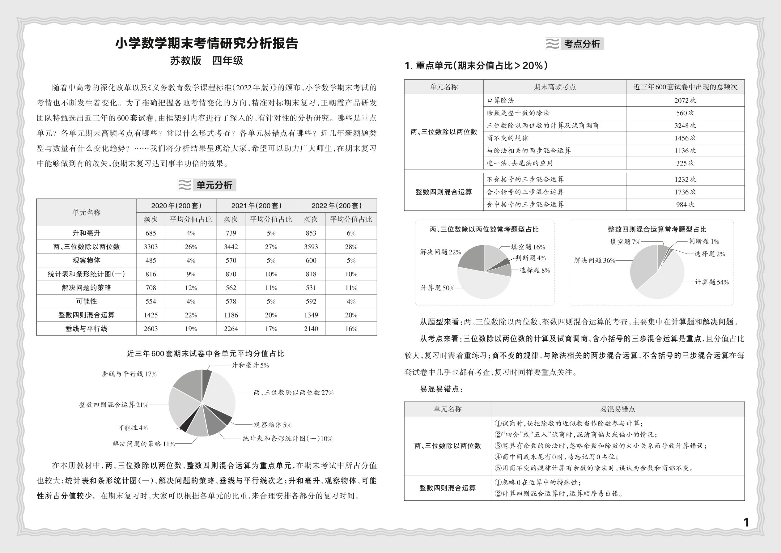 小学数学苏教版四年级期末考情研究分析报告(2023秋)