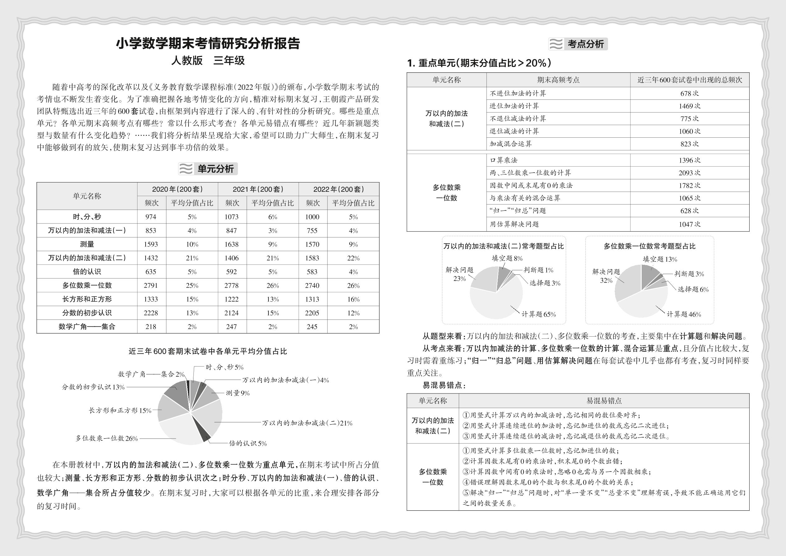 小学数学人教版三年级期末考情研究分析报告(2023秋)