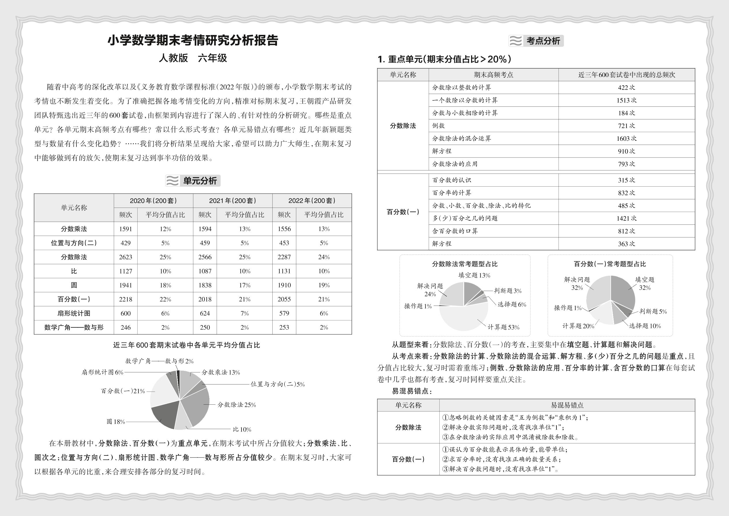 小学数学人教版六年级期末考情研究分析报告(2023秋)