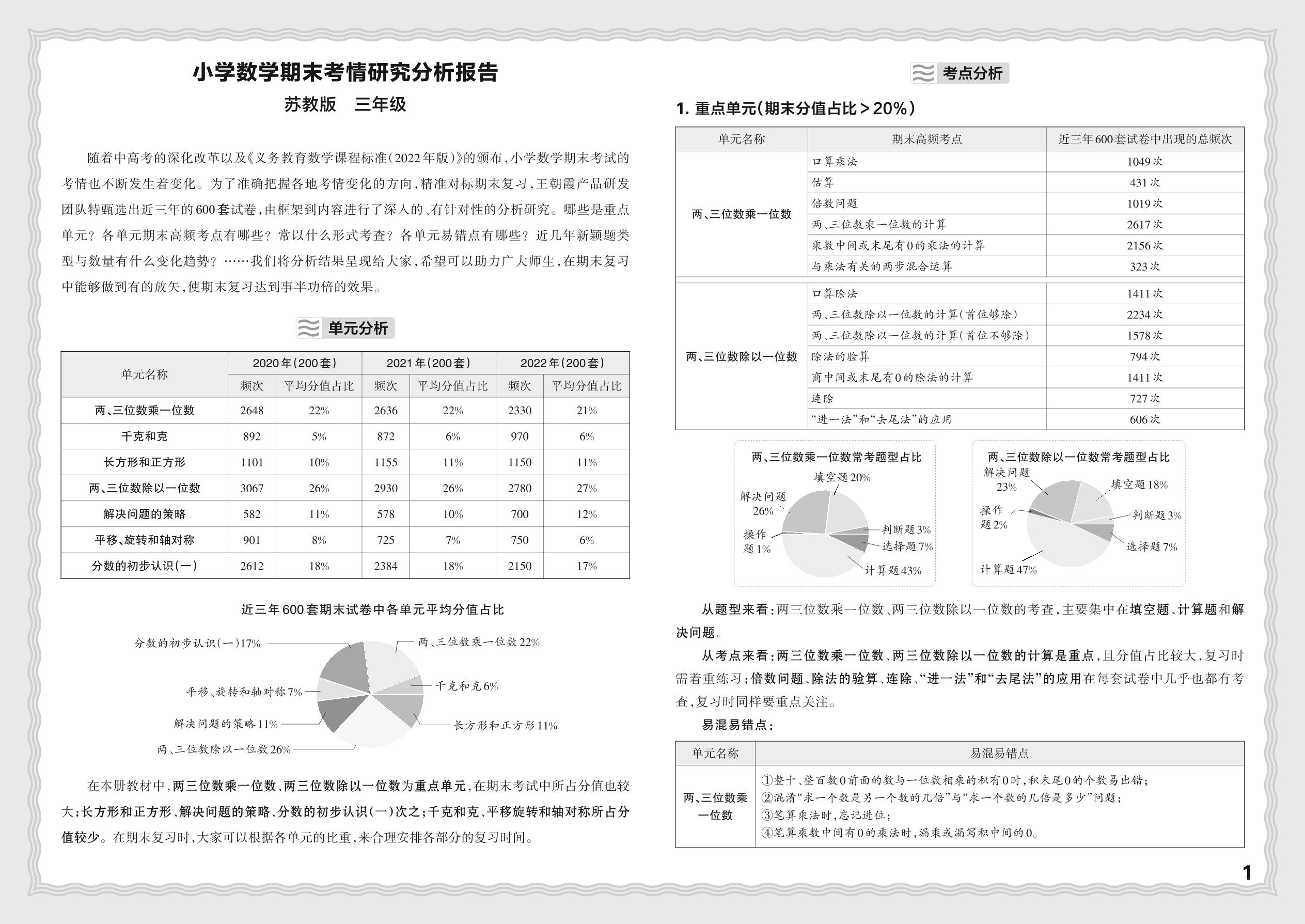 小学数学苏教版三年级期末考情研究分析报告(2023秋)