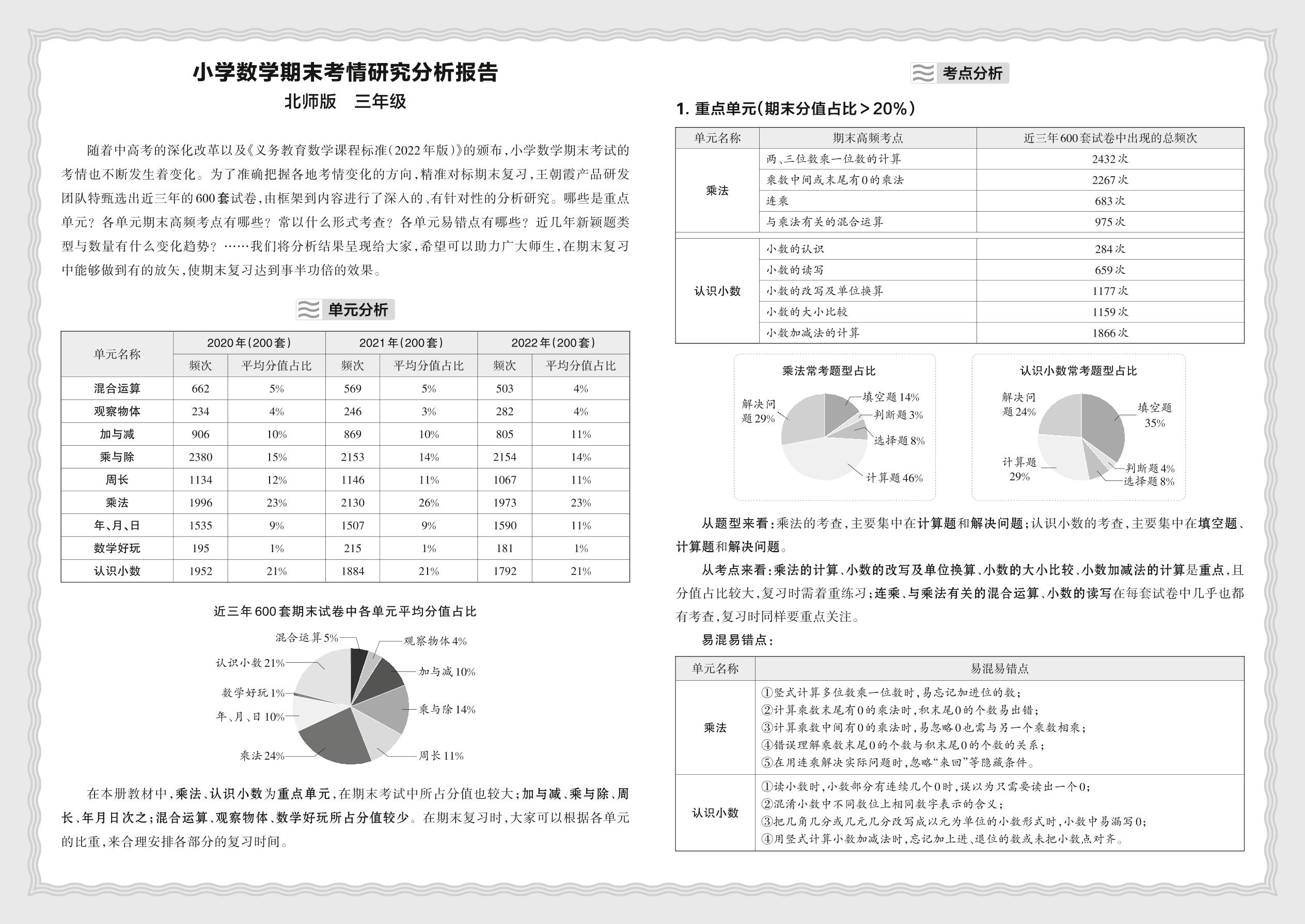 小学数学北师版三年级期末考情研究分析报告(2023秋)