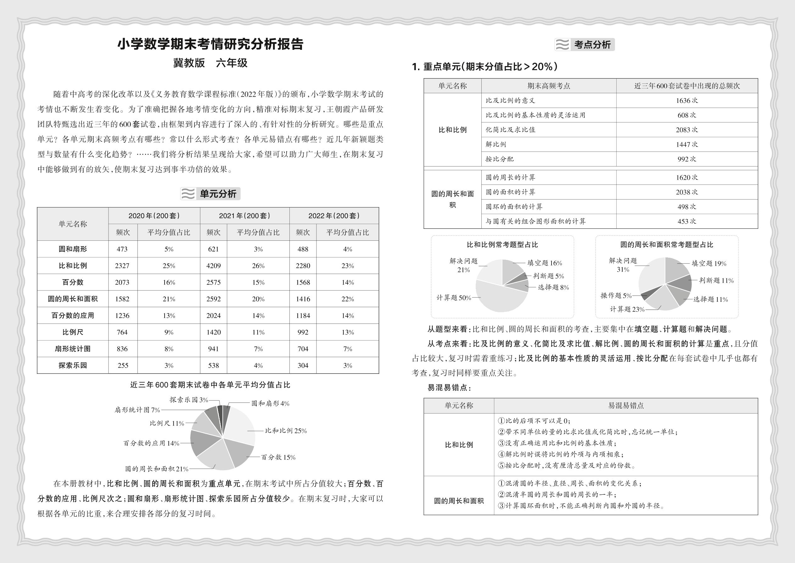 小学数学冀教版六年级期末考情研究分析报告(2023秋)