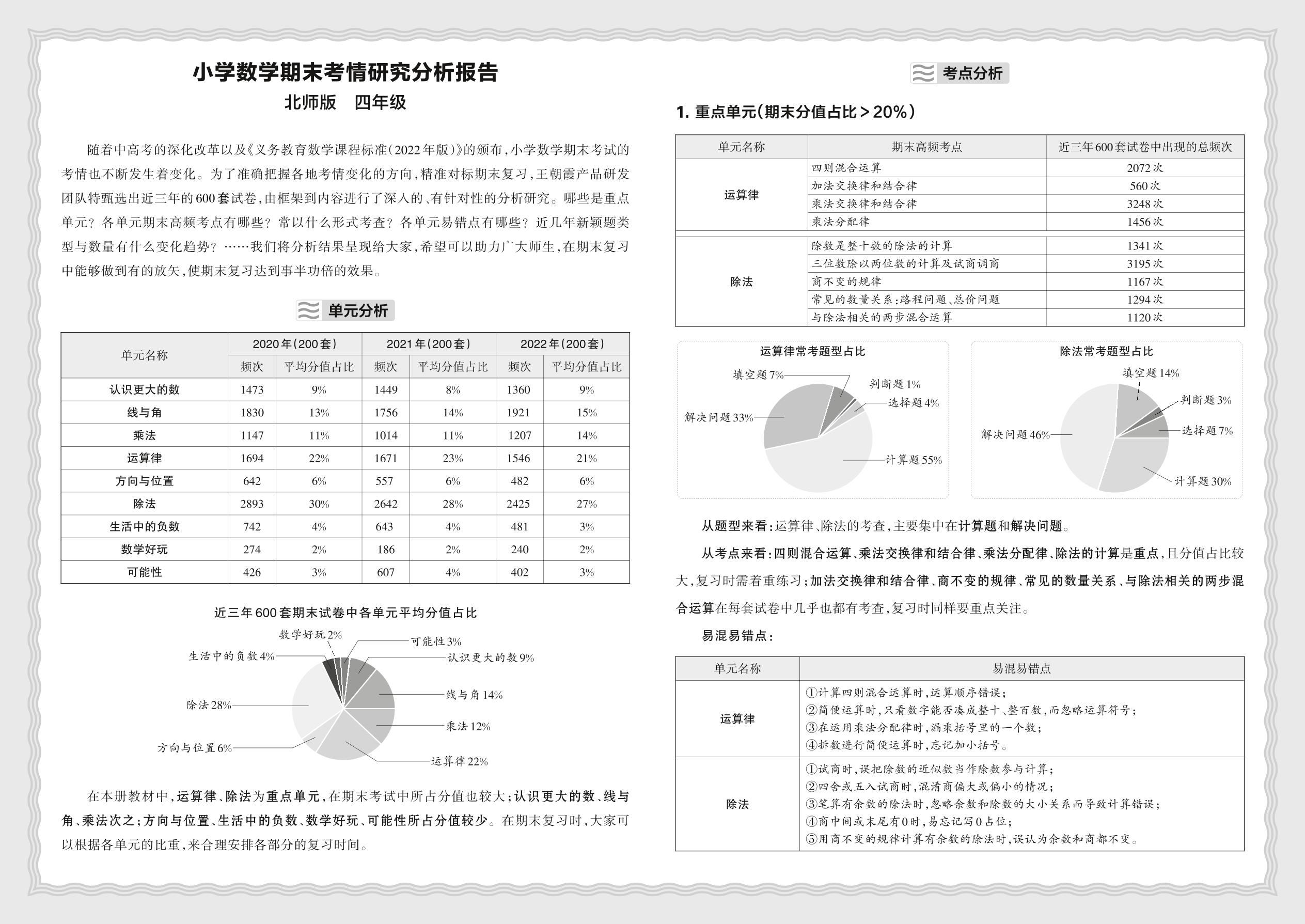 小学数学北师版四年级期末考情研究分析报告(2023秋)
